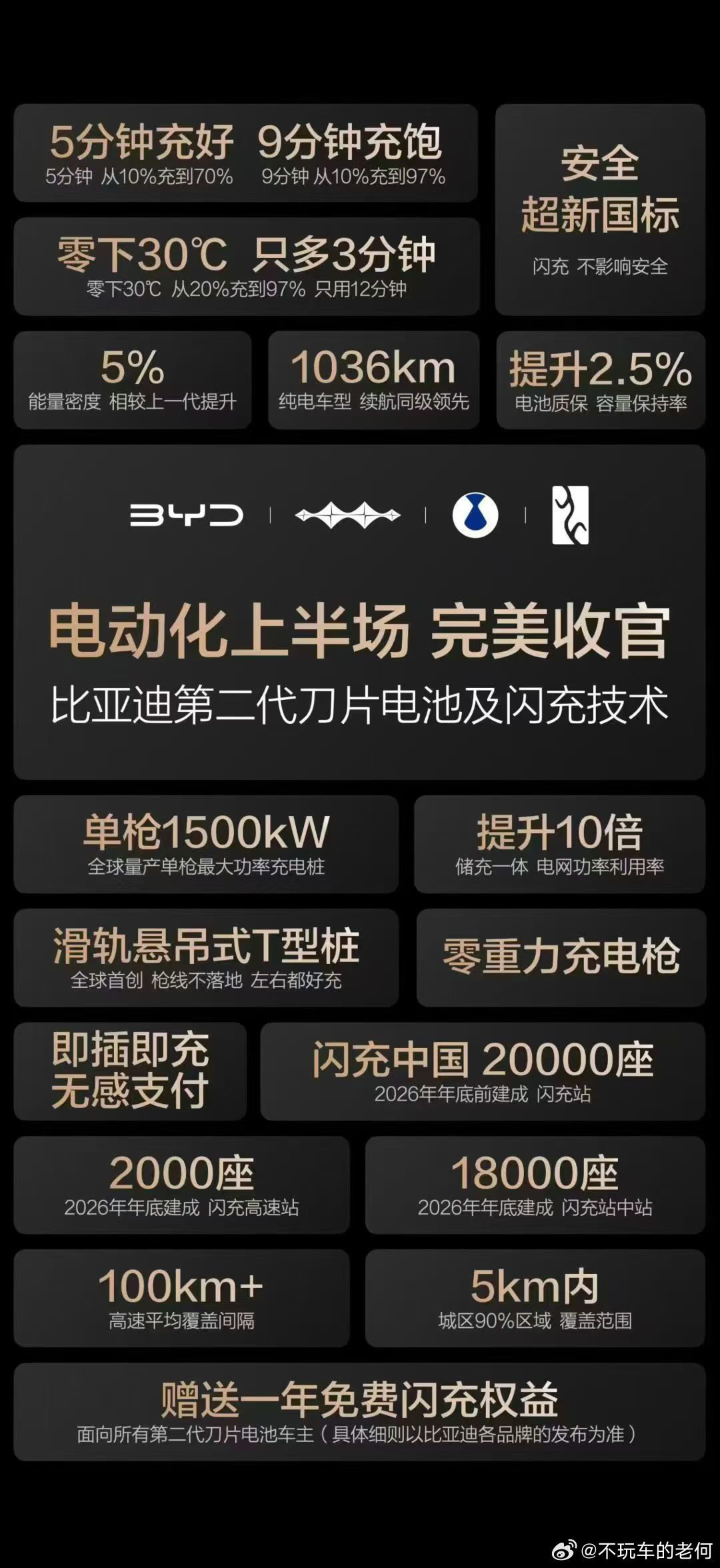 以比亚迪做事情的速度,这2万座闪充站不会花很长时间。这一波发布会属实是攒了一波大的,昨晚上朋友圈里比亚迪各品牌的人刷屏,上至大区,下至基层员工就没停过,太可怕了充电速度和续航是新能源时代最核心的需求,解决充电问题才是沉下来做事的样子。比亚迪