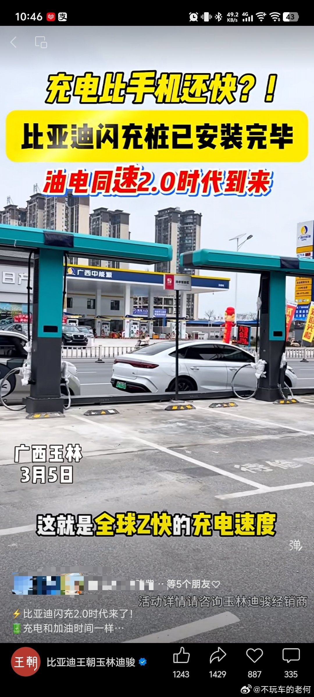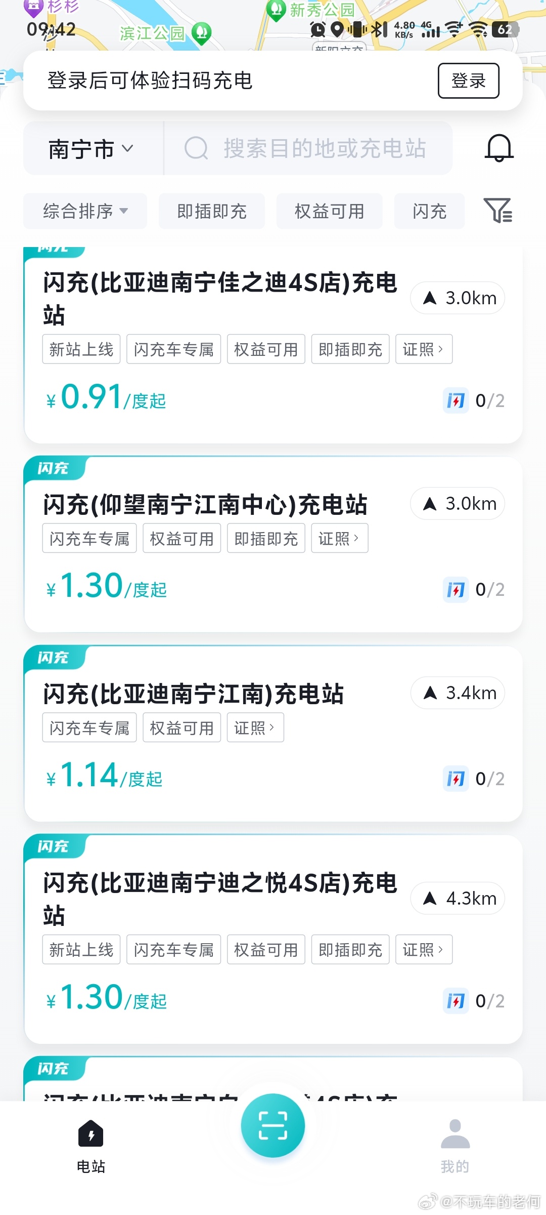 比亚迪全球首创闪充桩来了比亚迪宣布建设2万座闪充站今早下载了比亚迪闪充看了一下,目前广西已经开放的闪充主要还是在南宁的经销商4S店,每家店两根。其他城市的听说还在陆续建设,app上面还看不到。这段时间负责建桩的事业部已经要忙起飞了。
