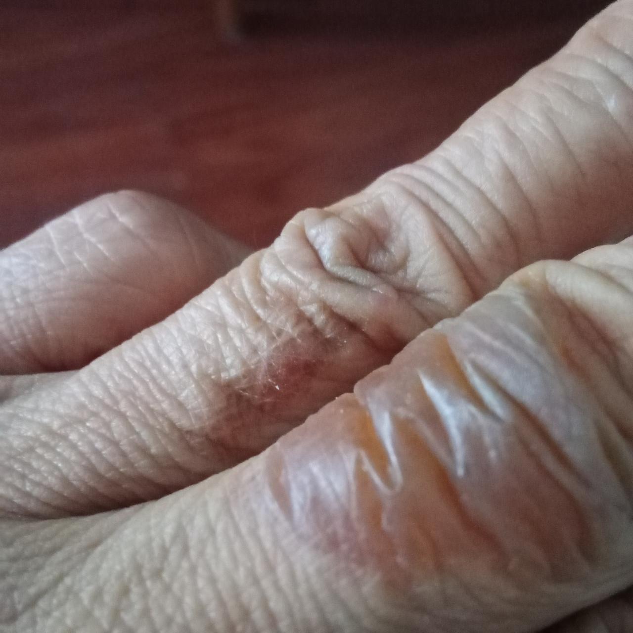 身体自愈力在我身上的体现 这几天从我身上发生的一件事,让我不得不相信,人体的自愈力的确太强大了。 这个3月1日我再焯烫蔬菜时不小心背锅中的蒸气熏烫了一下左手中指烫的厉害虽然经过冷水冲洗还是起了很大一泡(见图片一)。 当时为了止疼冲洗半个小时之后疼痛减轻。 作为60多岁的老年女人,抵抗疼痛的能力的确挺强。 去药店没有买到合适的烫伤膏,于是索性放弃。 我决定考验一下自己的忍受力和自愈力。 今天是第六天,疼痛早已全无水泡缩小五分之四,嗯手指上的纹路都清晰可见了(见图片二)。 期待,再过五六天基本就能全部恢复了。 这件事让我深刻的认识到有些身体的小毛病完全不用大惊小怪。 想一想之前的我,哪怕被蚊子叮咬一下,都耍去医院涂药膏,哪怕眼睛跳一跳,也会去医生那里问诊。 如今随着年龄的增长心智日益成熟以上这种做法,不仅让我省了金钱还为社会减少了公共资源的浪费。 何乐而不为呢?