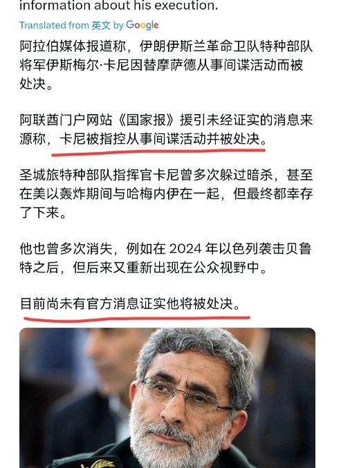 骇人听闻!伊朗内部居然隐藏着这么高级别的奸细!3月6日,外媒报道称,伊斯兰革命卫队特种部队将军伊斯梅尔·卡尼因代表摩萨德从事间谍活动而被处决。伊斯梅尔·卡尼是特种部队的负责人,在多次暗杀企图中幸存下来,甚至在美以轰炸期间与哈梅内伊在一起但都幸存了下来。 伊斯梅尔·卡尼的案子之所以让人震惊,核心在于他的位置实在太关键,堪称伊朗国家安全体系的核心枢纽。 作为伊斯兰革命卫队“圣城旅”指挥官,这不是普通的军事高官,而是掌控着伊朗海外行动命脉的关键人物。 “圣城旅”作为革命卫队的精英特种部队,1.5万名成员里全是经过层层筛选的骨干,不仅负责境内核心安保,更主导着伊朗在整个中东的代理人网络运作,从黎巴嫩真主党到也门胡塞武装,从伊拉克什叶派民兵到巴勒斯坦的抵抗组织,这些武装的武器供应、资金支持、行动协调,背后都有他的决策痕迹。 更致命的是他能接触的核心机密。作为可以直接面见最高领袖哈梅内伊的核心成员,他知道伊朗高层的安保部署、出行路线,甚至参与生死决策的讨论。 这些信息一旦流向摩萨德,等于伊朗的“心脏”和“血管”都暴露在对手眼前。 以往美以多次针对伊朗高层的暗杀、空袭能精准得手,或许就能找到答案——当最该守护秘密的人变成泄密者,再严密的安保体系也会形同虚设。 那些代理人武装的部署计划、补给线路、通讯密码,还有伊朗在叙利亚、伊拉克的秘密据点,都可能通过他的渠道被以色列掌握,这对伊朗经营数十年的“抵抗轴心”来说,无疑是釜底抽薪。 摩萨德能策反到这个级别的人物,绝非偶然,而是精准拿捏了伊朗当前的软肋。 长期的国际制裁让伊朗经济承压,通胀率连续多年高企,普通公职人员收入微薄,即便是高级军官,也可能面临家庭医疗、子女教育等现实困境。 摩萨德的策反手段很直接,不搞空洞的意识形态宣传,而是抛出“生存包”:几十万美元的现金、欧洲永久居留权、子女海外留学的全额奖学金,还有配偶的工作签证,这些实际利益对身处困境的精英来说,诱惑力可想而知。 更值得深思的是伊朗内部的情报体系漏洞。 伊朗足足有16个情报机构,看似严密,实则职能重叠、互相掣肘。 革命卫队情报组织和政府情报部各自为战,数据库互不联通,甚至存在资源竞争和内斗。 摩萨德正是利用了这种分裂,从基层岗位入手,先策反跨部门的技术支持、档案管理等“灰色岗位”人员,再顺着权限链条向上渗透,最终锁定高层目标。 这种“蜂巢式”的策反模式,让间谍网络像藤蔓一样扎根在伊朗体制内部,很难被察觉。 更讽刺的是,负责反间谍的部门里,都可能藏着被策反的人员,导致多次内部清查都流于形式,甚至变成排除异己、保护间谍的幌子。 卡尼的倒戈带来的影响远不止一次处决能平息。 首先是代理人武装的信任危机,黎巴嫩真主党、胡塞武装等势力会怀疑伊朗传递的情报是否安全,合作会不会变得犹豫。 其次是革命卫队内部的人心动摇,高层之间的信任会大打折扣,后续的人事调整和忠诚度审查可能引发内部动荡。 再者,美以会趁机扩大优势,利用已经获取的情报精准打击伊朗的海外利益,压缩其地区影响力。 伊朗想要重建情报安全体系,难度极大,因为间谍网络可能已经渗透到各个关键节点,清理起来如同拆弹,稍不留意就可能引发更大的泄密。 这起事件也暴露了伊朗“代理人战争”战略的潜在风险。 多年来,伊朗靠扶持地区武装扩大影响力,却忽略了内部管理的漏洞。 当核心决策者被策反,整个战略布局都可能被对手掌控,之前的投入和牺牲都可能付诸东流。 而摩萨德通过这次成功策反,不仅打击了伊朗的实力,更在心理上给伊朗高层造成压力,让他们陷入“身边人皆不可信”的困境。 这种心理战的效果,可能比单纯的军事打击更持久。 后续伊朗大概率会展开更严厉的内部清洗,但过于激进的审查反而可能加剧内部矛盾,让更多人产生不满,给摩萨德更多策反的可乘之机。 如何在清理内鬼和稳定内部之间找到平衡,是伊朗面临的棘手问题。 而对于中东地区来说,这起事件可能会改变地区力量对比,以色列的情报优势进一步扩大,伊朗的海外行动会更加谨慎,那些依赖伊朗支持的武装组织,也可能不得不调整自身策略,整个地区的局势会因此变得更加复杂微妙。