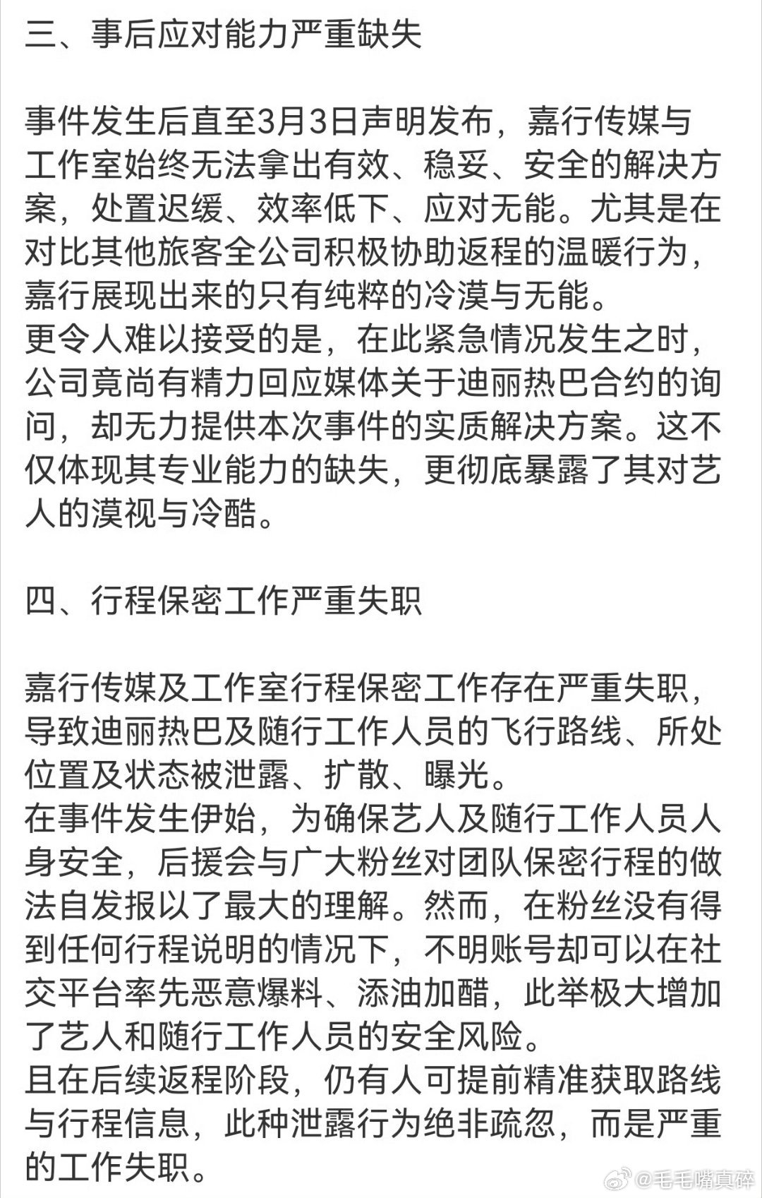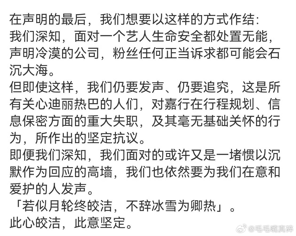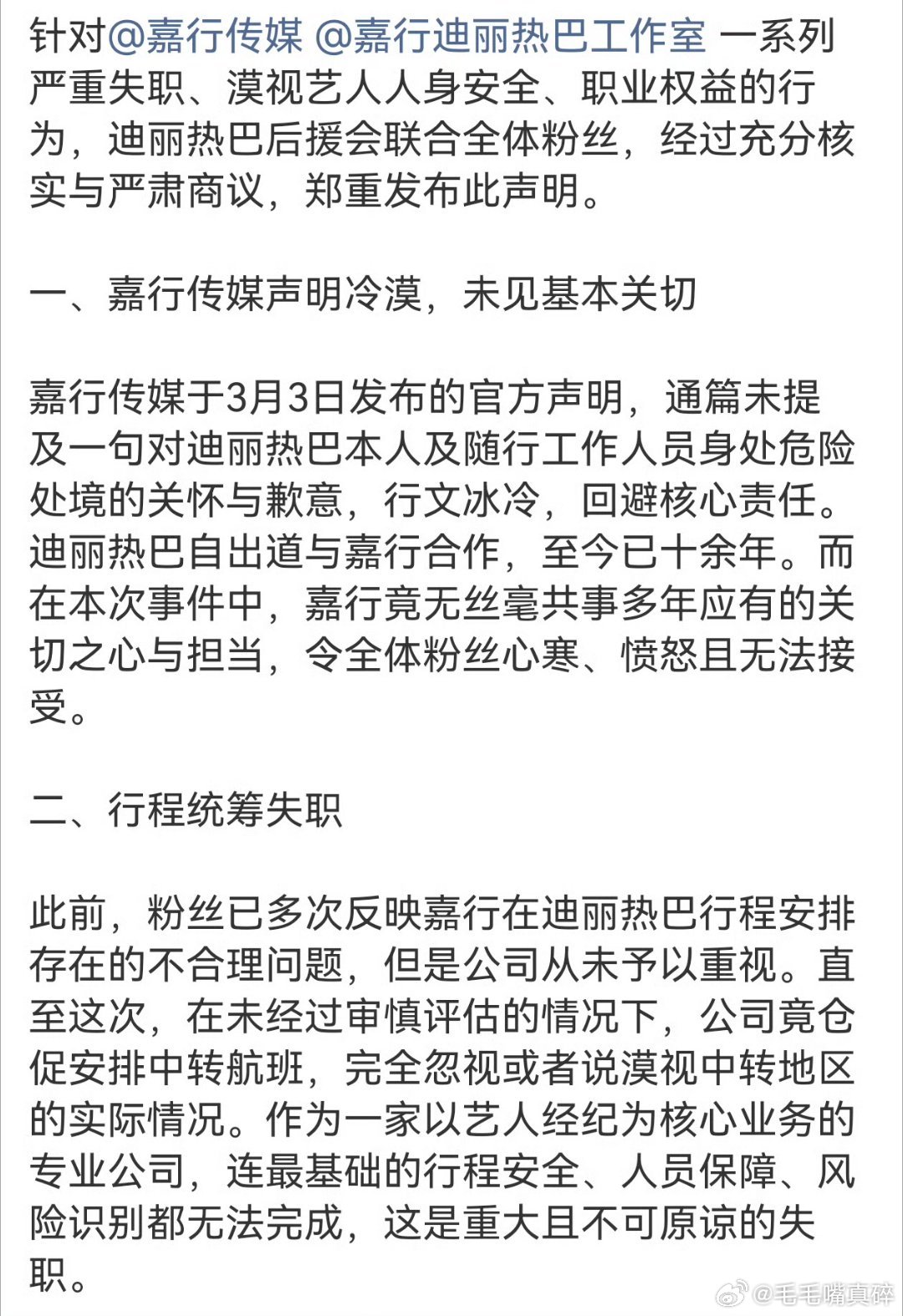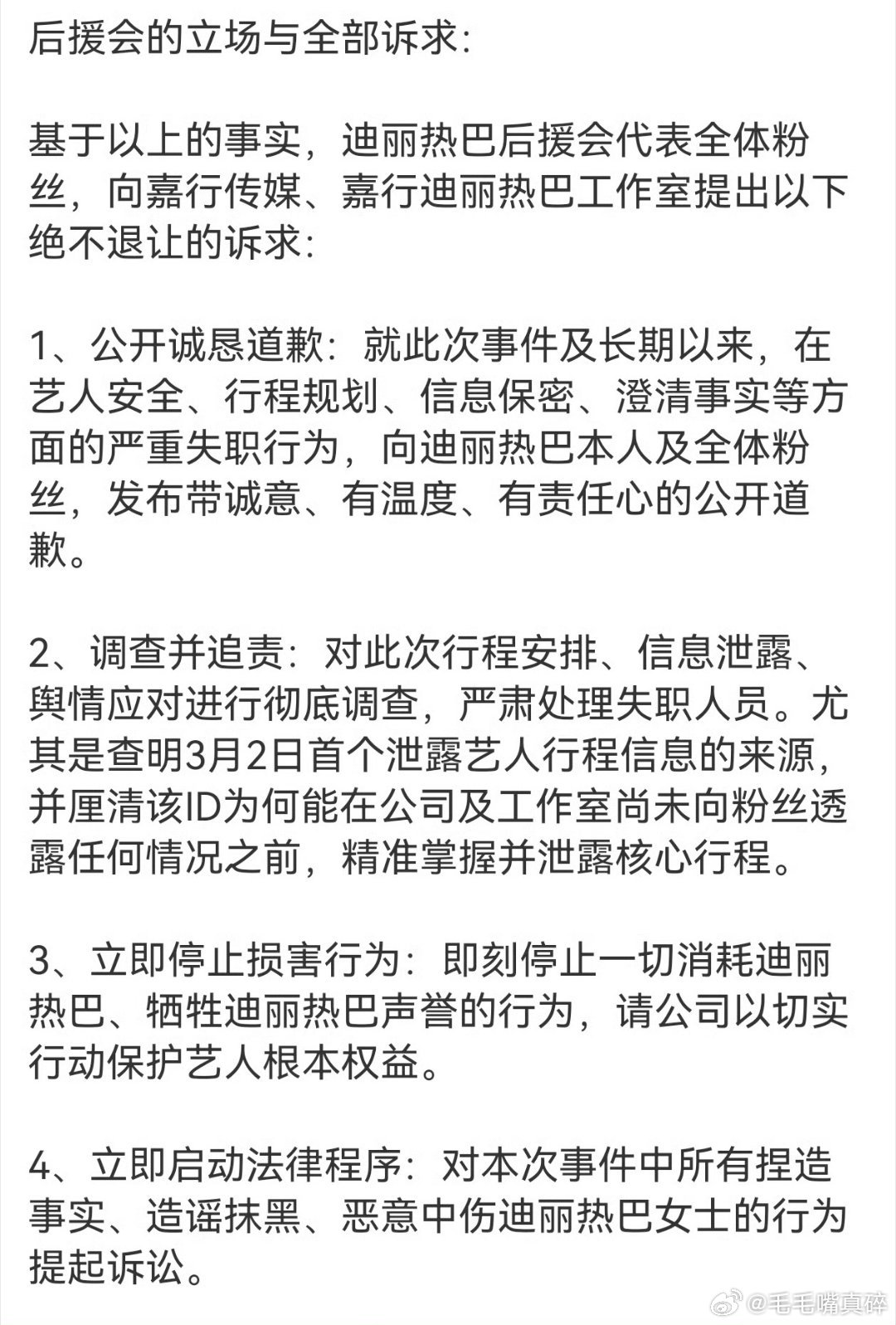 迪丽热巴 不止星光美也有实干美迪丽热巴粉丝正在向嘉行反应自己诉求