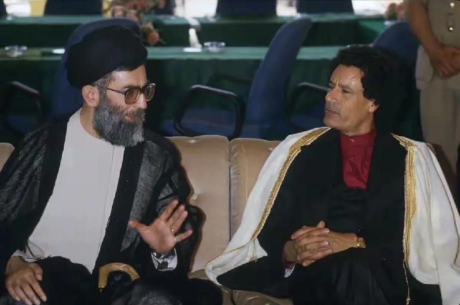 哈梅内伊分别与阿拉法特、卡扎菲会面的场景。 戴眼镜的哈梅内伊很常见,手拿香烟的哈梅内伊神情很严肃,估计正和阿拉法特讨论着国家的大事情。 卡扎菲的姿态很高冷,肢体上和哈梅内伊保持着距离;哈梅内伊好像在发表自己的看法,皱着眉头的卡扎菲有点不以为然。 三位生前都是中东的风云人物。 哈梅内伊为国殉难; 阿拉法特的去世成未解之谜; 卡扎菲的死状很凄惨。