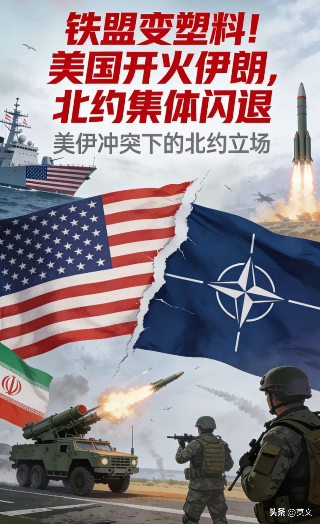 炸锅了!美国单挑伊朗,北约31国集体“装死”?真相太扎心🔥 别被忽悠了!不是北约讲义气,是法理不允许、利益不划算、家底扛不住、信任已崩盘,四大死穴卡死,想参战都没门! 先说最硬的一条:条约红线碰不得。北约第五条写死——只有欧美本土遭攻击,才启动“一国受袭、全体参战”。这次是美国主动打伊朗,纯域外进攻性行动,跟北约防御半毛钱关系没有。秘书长吕特直接摊牌:北约不参战,顶多个别盟友自己玩,法理上直接“免责”,谁也别想道德绑架! 再算经济账:欧洲输不起。霍尔木兹海峡扛着全球20%石油运输,欧洲能源命根子攥在中东。真跟着打,油价暴涨、通胀爆表、民生崩盘,政客们选票直接归零。西班牙直接拒给美军基地,英国德国明确不碰进攻性打击,都是算透了:为美国霸权买单,纯纯冤大头! 还有家底问题:援乌已掏空,无力双线扛。欧洲武器库存、国防预算、军工产能全砸在乌克兰,再卷中东,东西两线同时承压,本土防御都要露怯。说白了,想帮也没力气,心有余而力不足! 最致命的是信任碎一地。美国这次搞单边突袭,事前不跟欧洲盟友商量,法国意大利临开打才知情,把盟友当空气。当年伊拉克、阿富汗战争的坑还没爬出来,现在谁还敢盲目跟?跨大西洋联盟,早就是面和心不和! 总结:北约不参战,不是良心发现,是利益算得精、风险躲得快。所谓同盟,关键时刻还是各顾各,美国的霸权战车,没人愿意再上车陪葬! 👉 你觉得北约是真中立,还是在等时机坐收渔利?美国这次单打独斗,会不会彻底失去欧洲信任?评论区聊透,别只看表面! 北约为何没参与美国对伊朗的军事行动美国对伊朗开战 美军攻打伊朗 美国对伊朗空袭 伊朗怒批美国 美国入侵伊朗 伊朗命中目标 美军合围伊朗