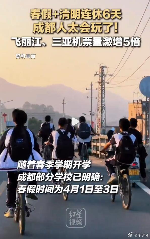 成都、南京、苏州这些城市的中小学,已经官宣春假时间了,4月1日到3日跟清明节相连,形成了6天长假!但是这也只是中小学生才能享受的了,家长如果想跟孩子一起出去玩,那就得请假3天,如果不用年假,那就是事假了。关键是很多企业根本不允许这么请假。这就导致一个问题,孩子们可以敞开玩,但大人还得吭哧吭哧的上班,即便能请假也意味着扣钱,这怎么权衡?说到头来,中国的假期还是太少了,还有万恶的调休制度,不知道什么时候能改改?多地官宣春假清明连休6天春假清明连休6天家长称很无奈春假清明6天长假有旅游线路已售罄你赞成取消调休吗