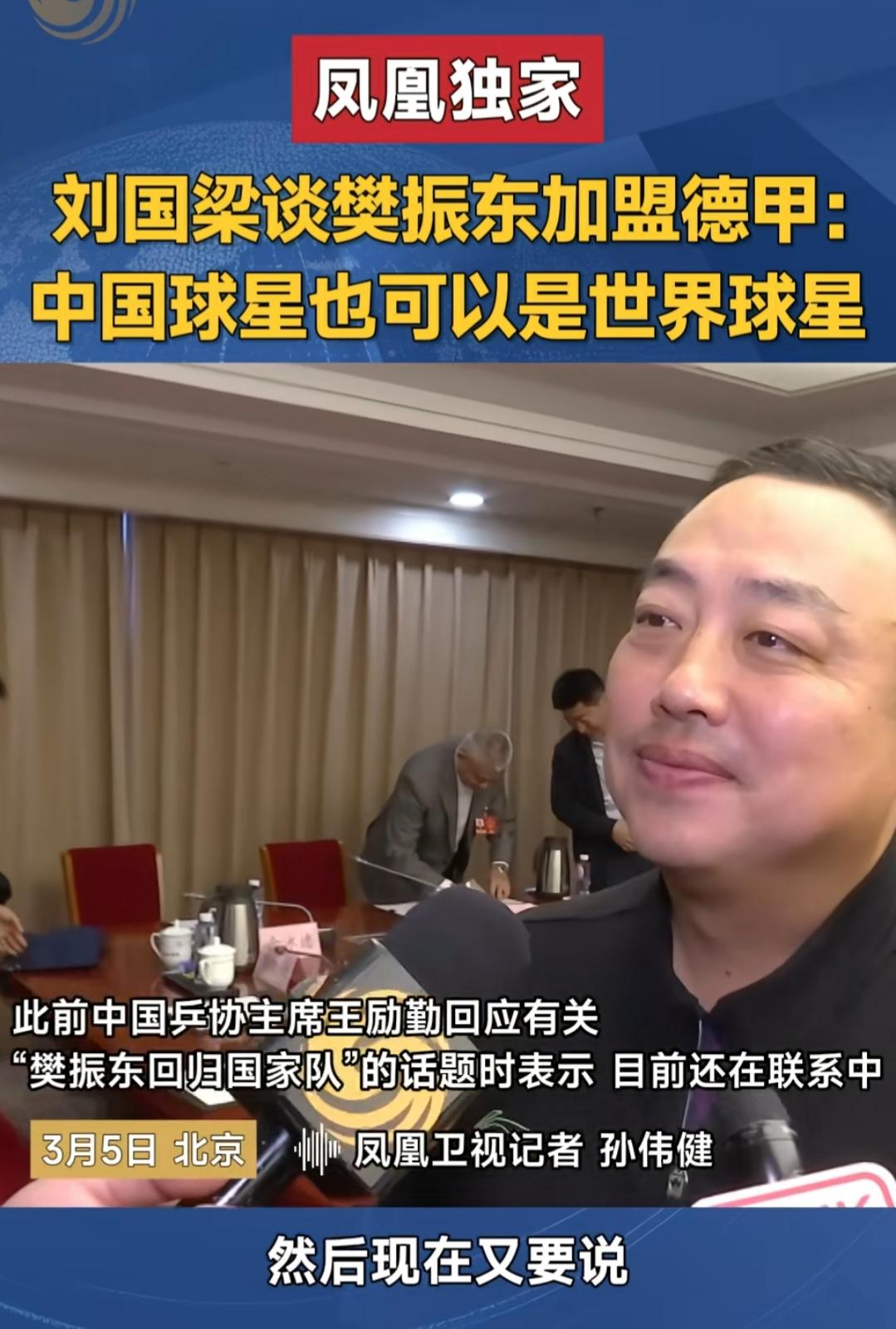 被问怎么看待樊振东去德甲?现在又说要回归国家队。怎么看待这一去一回? 刘国梁的回复满分,没有犹豫,对樊振东都是赞美,他是一个优秀的运动员,在完成自己职业生涯大满贯,事业取得阶段性圆满的时候,勇于踏出新的一步,去世界打球,他可以成为世界的球星! 刘国梁作为曾经的刘主席,球技,管理能力,品德,对球员的心理管理,都是一流的。更重要的是,能够和球员打成一片,和蔼可亲,这种能力不是谁都有的。.