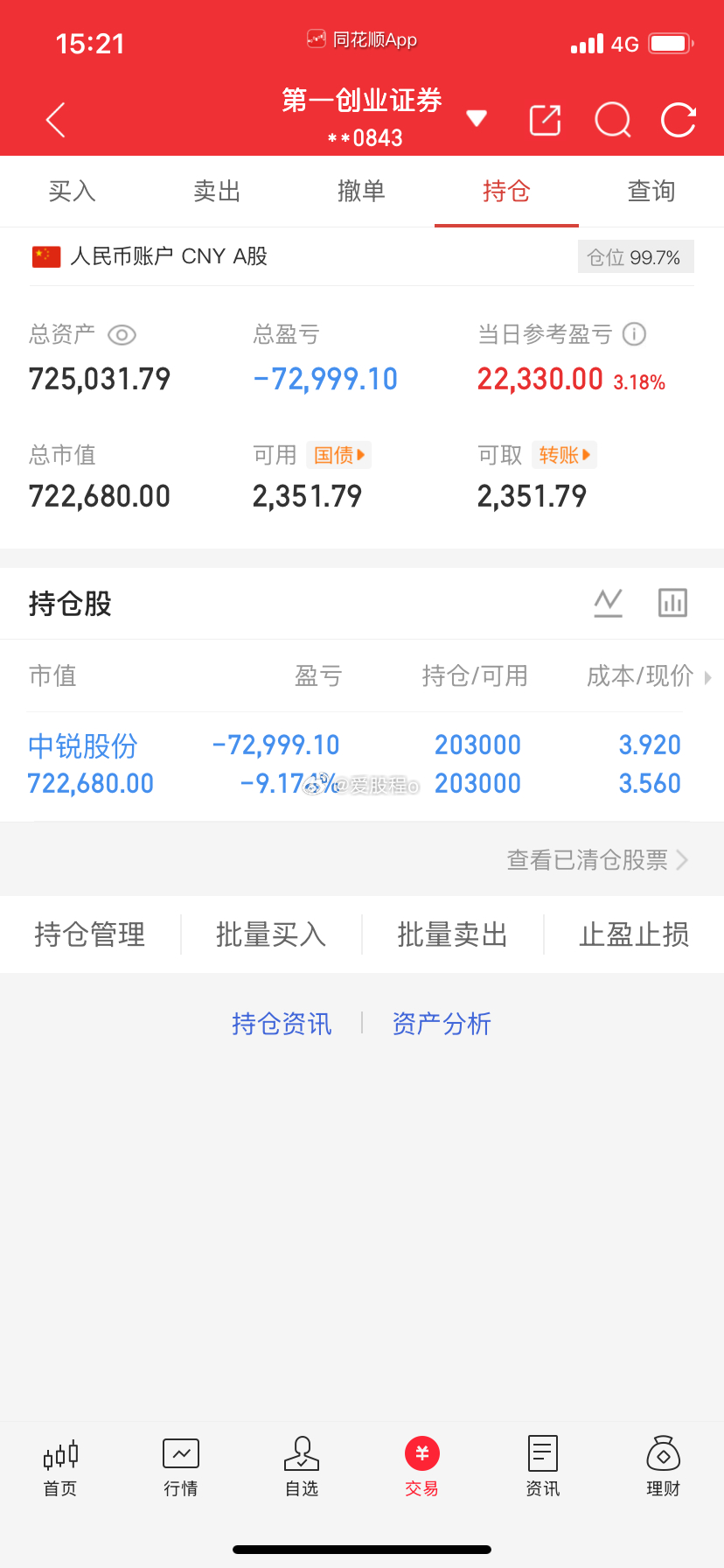目前持有:中锐股*特别声明:本文仅是个人观点及操作不构成投资建议,仅供参考!