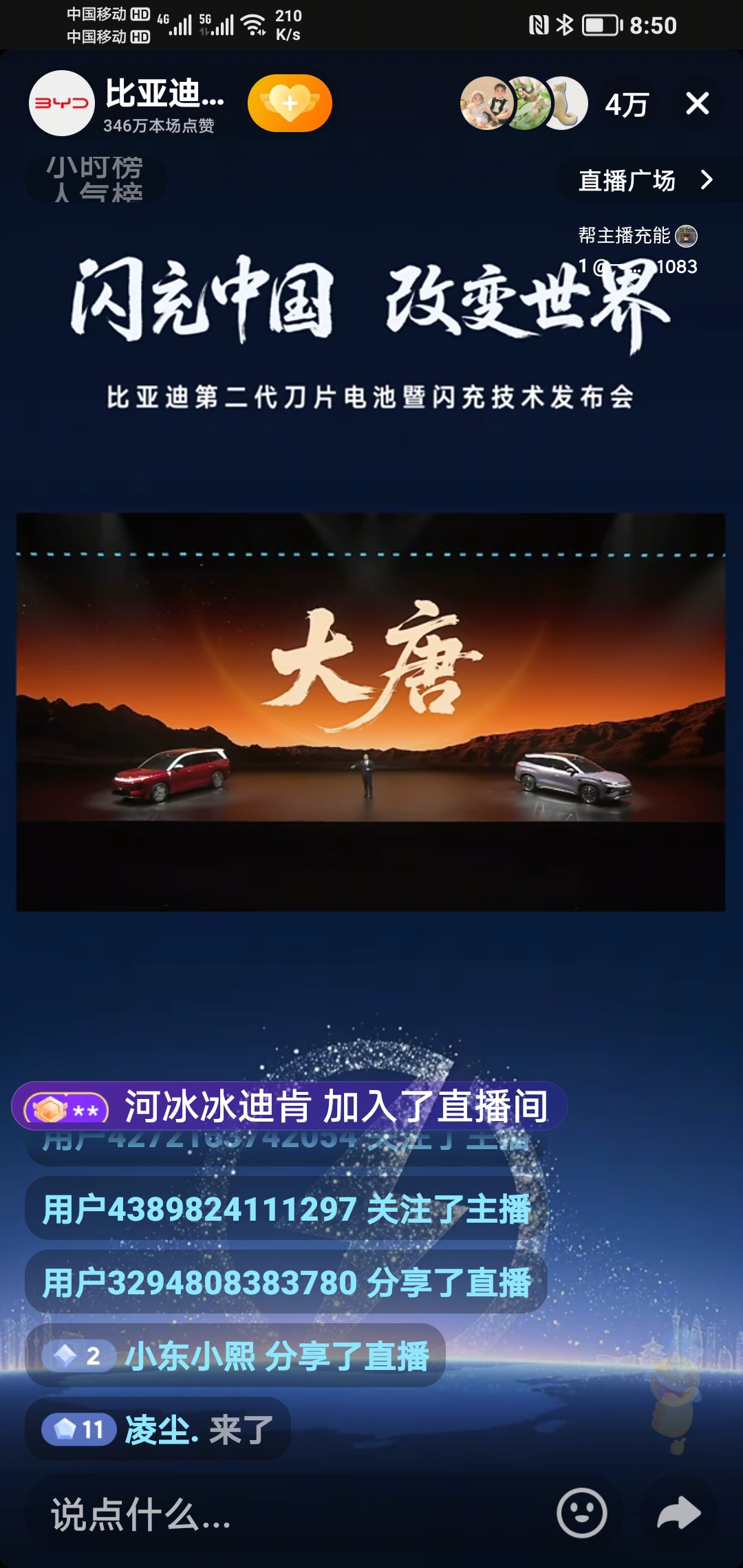 发布会观看数据: 全网累计观看超2300万人次 比亚迪官方直播间、抖音、视频号、微博等平台累计观看超1800万人次 技术论坛与垂直平台:汽车之家、懂车帝等专业平台观看超300万人次 科技媒体同步直播:36氪、虎嗅等科技媒体观看超200万人次 总计:全网累计观看人次超2300万,成为中国汽车行业史上观看人数最多的技术发布会。