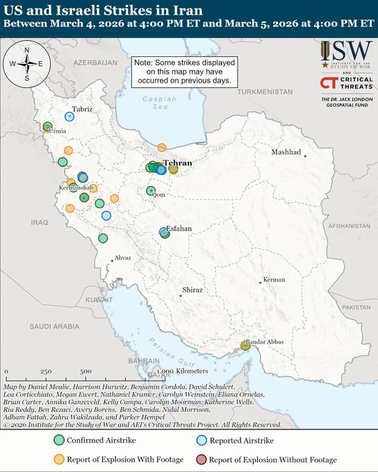 最新消息:美以联合部队已进入行动的下一阶段,该阶段将重点打击伊朗国防工业资产,特别是导弹生产设施。行动的第一阶段压制了伊朗的防空系统,摧毁了其指挥控制系统,并限制了其使用弹道导弹和无人机进行反击的能力。 要点: 3月5日,以色列国防军对德黑兰省帕克达什特的阿巴斯阿巴德工业区和申扎尔工业区发布了疏散警告,这很可能是为了打击伊朗的国防工业基地而做的准备。 以色列国防军还袭击了位于库姆省曼扎里耶的阿尔特什·沙希德·法拉沙希弹药库限制区域的机库和掩体,这很可能是其持续破坏伊朗军事后勤和武器储存基础设施行动的一部分。 3 月 4 日的卫星图像证实,联合部队自 2 月 28 日以来第二次袭击了德黑兰以东的帕尔钦军事基地,并损坏了数座建筑物。 以色列国防军(IDF)持续对伊朗弹道导弹基础设施发动空袭,以削弱伊朗的导弹能力。以色列国防军3月5日报告称,自2月28日以来,以色列战机已袭击伊朗境内数百个导弹发射场,并使300多个弹道导弹发射装置失效。削弱伊朗的防空能力,使得美国和以色列的战机能够在伊朗领空以更低的风险和更大的行动自由执行任务。 联合部队继续对德黑兰市及其周边地区以及伊朗西北部库尔德人聚居区的重要内部安全目标进行空袭。这些目标包括地区执法指挥部和伊斯兰革命卫队总部,以及动乱热点地区的当地警察局。 联合部队持续打击伊朗西南部地区的伊朗伊斯兰革命卫队地面部队特种部队和快速反应部队。联合部队尚未在全国范围内大规模打击其他伊朗伊斯兰革命卫队或伊朗陆军特种部队基地或基础设施。然而,互联网中断可能影响了联合战术小组-情报与安全办公室(CTP-ISW)对这些打击行动的观察能力。