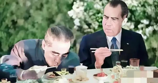 1972年,尼克松访华,与周总理邻座用餐,总理吃饭的一举一动让他震惊不已,一点没有身居高位者的架势。 1972年的冬天,北京寒风呼啸,但人民大会堂里却暖意融融,美国总统尼克松带着满心的好奇与试探,踏上了这片陌生的土地,这是美国总统第一次访华,全世界的目光都聚焦在这里,所有人都在关注这场跨越太平洋的握手,关注中美关系的全新开端。 尼克松为了这次访华,做了足足几个月的准备,光是用筷子这件事,他就苦练了一个多月,就怕在国宴上出洋相,丢了超级大国总统的体面,他想象中的中国国宴,应该是排场十足、礼仪繁琐,而身为中国总理的周恩来,也该是高高在上、举止考究,带着大国领袖的距离感,毕竟这是新中国首次接待西方大国元首,规格必然拉满。 事实也确实如此这场国宴的规格,足以让任何一位外宾震撼,为了这顿饭,有个代号34号的食品保障部门,提前大半年就开始备料,辽宁獐子岛的潜水员,在零下二十多度的海水里打捞黄海鲍鱼。 四川长宁的竹荪,被当成政治任务紧急调运,浙江平阳的蚕豆,还要请当地老农掐算,确保运输到北京时刚好达到最佳口感,冷盘九道、热菜六道、点心七道,再加上甜品水果,每一道菜都藏着中方的诚意。 可让尼克松万万没想到的是,这场精心筹备的国宴上,最让他铭记一生的,不是精致的菜品,不是隆重的排场,而是坐在他身边的周恩来总理,吃饭时的一个小动作。 宴会开始后,尼克松努力学着用筷子夹菜,动作不算熟练,但也还算从容,周总理看到后,笑着点了点头表示赞赏,这份温和让尼克松紧绷的神经放松了不少,可随着用餐推进,他的目光渐渐被周总理的举动吸引,再也挪不开。 身为管着几亿人口的大国总理,周总理吃饭没有丝毫架子,夹菜动作很轻,不挑不拣,碗里的饭菜吃得干干净净,连一粒米都没有剩下,有一次一小块菜屑不小心掉在了桌上,周总理没有丝毫犹豫,也没有半点刻意,自然而然地捡起来放进了嘴里,就像寻常百姓在家吃饭一样,朴实得让人难以置信。 尼克松当时就愣住了,他见过太多身居高位的人,哪怕是一顿普通的饭菜,也要讲究繁文缛节,摆足架子,可眼前的这位中国总理,却把朴素刻进了骨子里。 后来尼克松才知道,这不是周总理刻意做给他看的,而是刻在骨子里的习惯,总理的侄女周秉德回忆,在家里吃饭时,总理也是这样,掉在桌上的米粒会一粒一粒捡起来,吃到最后还要掰一块馒头,把碗碟上的菜汁擦干净再吃掉。 更让尼克松震撼的是,这位操持着大国政务的总理,生活里的朴素远超他的想象,周总理月工资只有四百多块钱,其中两百多块还要补贴给亲属,自己的饮食常年都是两菜一汤,主食多是粗粮,工作人员想给他加菜,总会被他严肃制止。 周总理出国带的箱子里,没有什么机要文件,反而装着一件磨得看不出纹路的旧睡衣,住再高级的宾馆,工作人员都要先把这件旧睡衣收好锁起来,才敢让服务员进去打扫。 这场国宴上还有很多细节,藏着周总理的温柔与智慧,他提前做足功课,知道《美丽的亚美利加》是尼克松就职典礼上的曲目,特意让乐队演奏这首曲子,让远在异国的尼克松感受到了家的温暖。 周总理用火柴点燃杯中的茅台酒,笑着跟尼克松开玩笑,化解了外交场合的拘谨,也让这场历史性的会面多了几分温情,他举杯时说干杯,嘴唇却只轻轻碰一下杯沿,不是敷衍,而是因为年纪大了,大夫不让多喝,这份坦诚比任何华丽的辞藻都更动人。 后来尼克松在回忆录里反复提到这场国宴,提到周总理捡饭粒的动作,尼克松说这是他第一次见到,一国领袖能朴素到如此地步,这份贴近人民的底色,远比华丽的排场更让人震撼,而基辛格也在书中评价周总理,说他是自己见过最有魅力的人,目光炯炯却又格外亲切,外表从容内心却藏着无尽的责任与担当。 这场国宴藏着中国的底气与温柔,而周总理的朴素,藏着一个大国领袖的风骨,周总理身居高位,却始终把自己当成人民的勤务员,不慕虚荣、不享特权,操心的事大到国家命运,小到国宴上一道菜的原料,可自己的生活,却简单到不能再简单。 真正的伟大从不是身居高位的清高,而是贴近人民的朴素,真正的领袖从不是靠排场彰显威严,而是靠初心赢得人心,周总理用一生的坚守,诠释了为人民服务的真谛,这份精神跨越岁月,历久弥新,永远值得我们铭记。 麻烦看官老爷们右上角点击一下“关注”,既方便您进行讨论和分享,又能给您带来不一样的参与感,感谢您的支持!