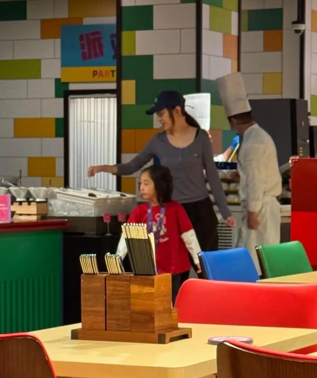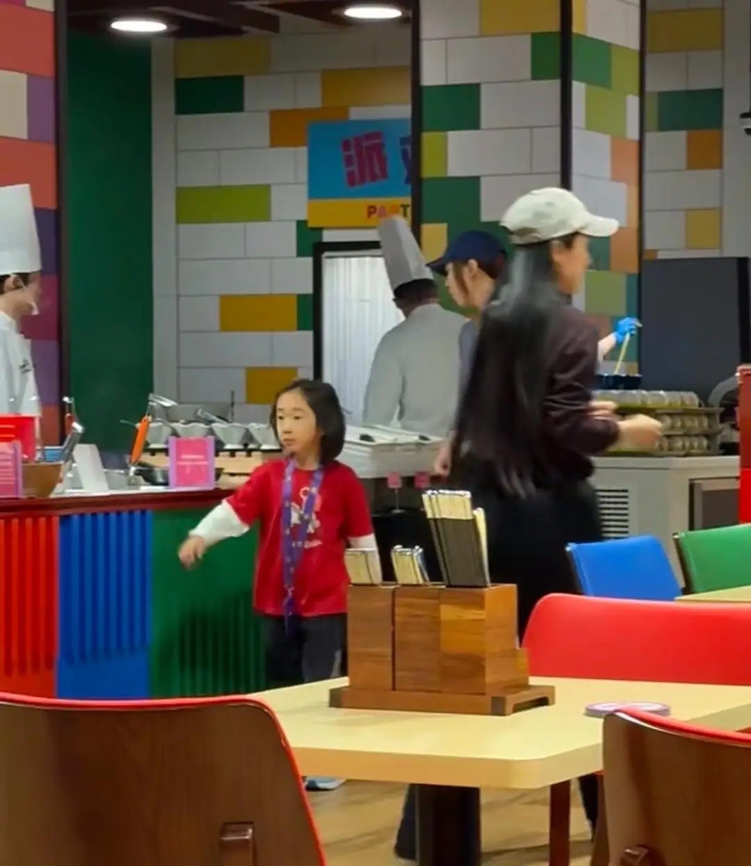 应采儿带5岁小儿子到上海乐高乐园玩,他的儿子留着长发,长相有点奇怪,看起来又老又小的,完全没有遗传到妈妈的美貌!