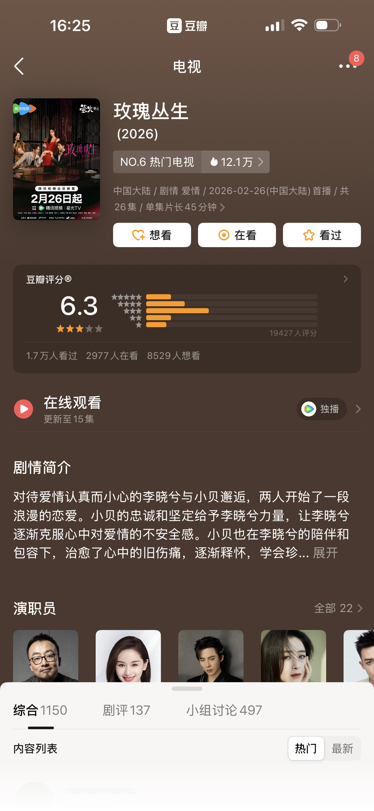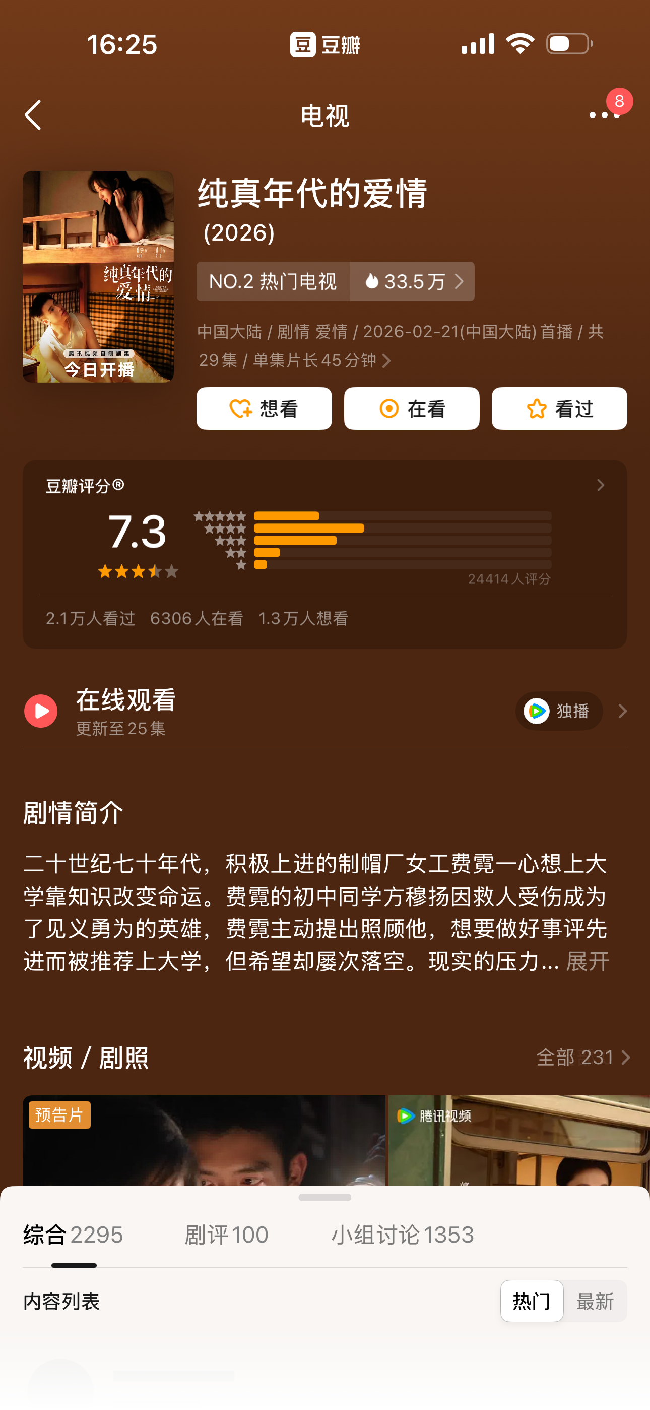 最近几部剧豆瓣开分纯真年代的爱情7.3岁月有情时6.5唐宫奇案7.0玫瑰丛生6.3都高了还是低了?