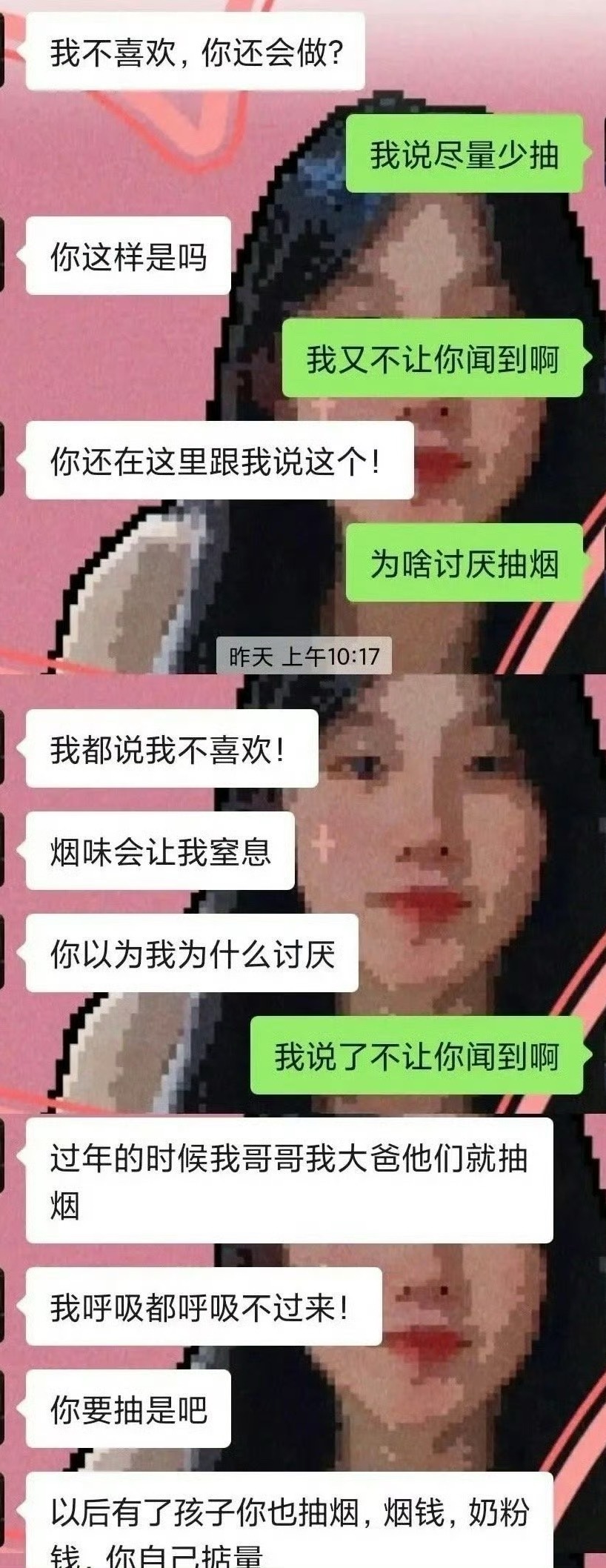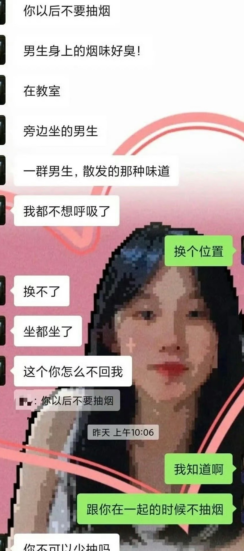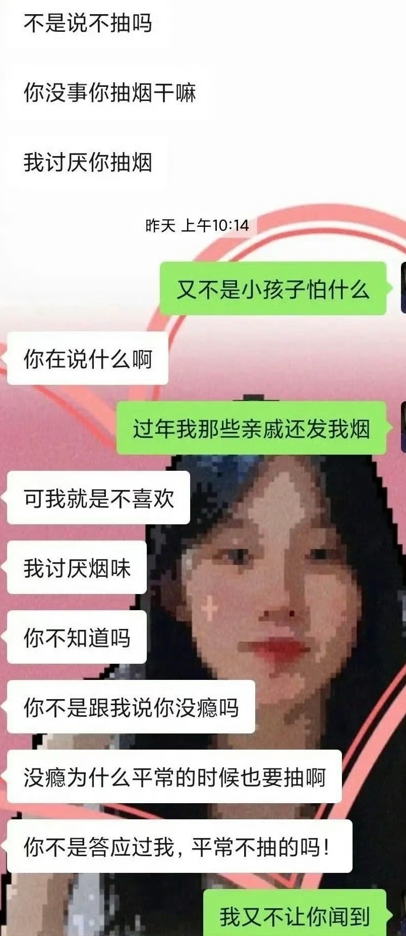 换一个吧,你值得拥有一个抽烟的老婆,别霍霍这个妹子了