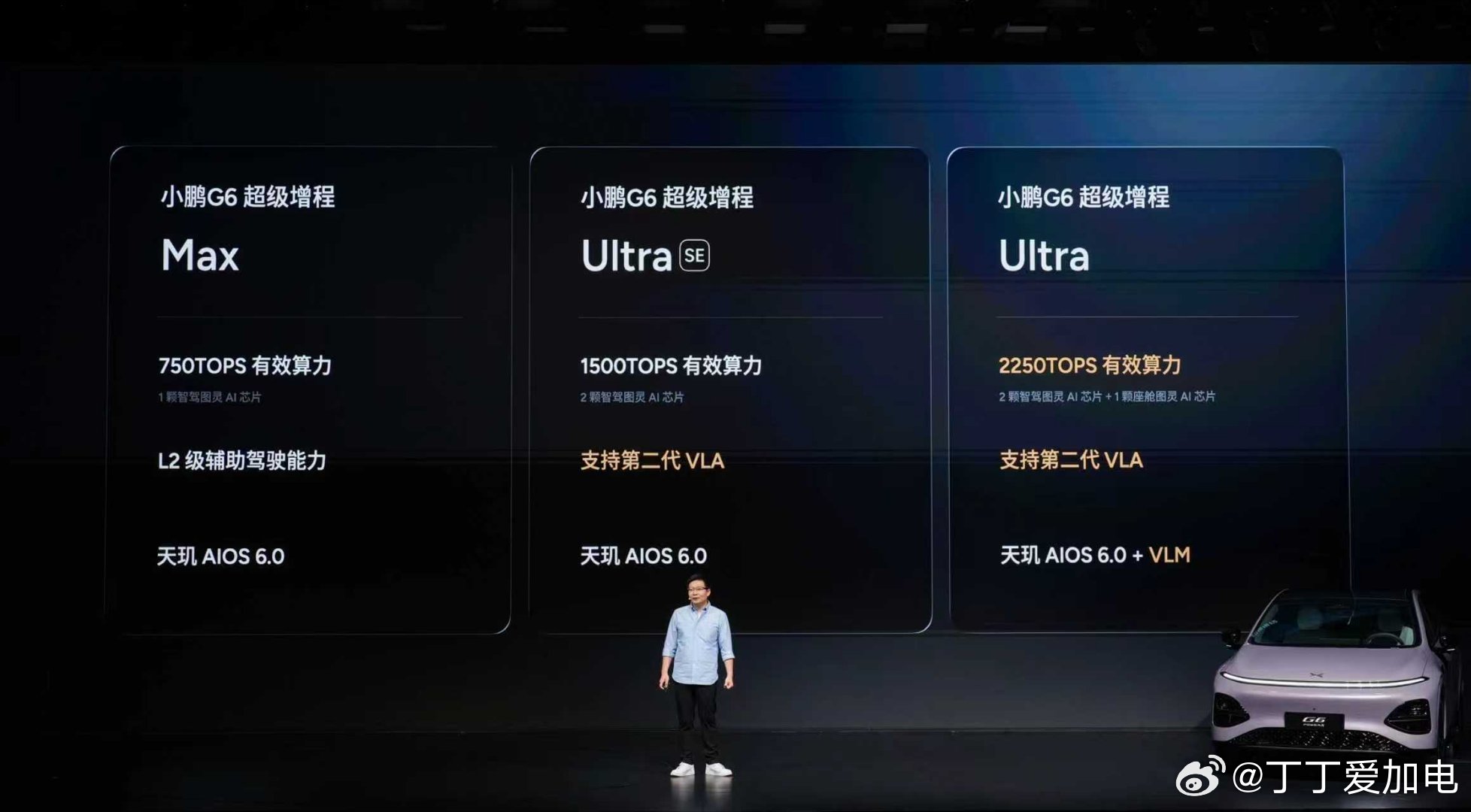小鹏G6超级增程六项全能一步到位何小鹏称G6将第二代VLA带入20万内小鹏G6将第二代VLA带入20万内,让国民车拥抱国民智驾。从技术能力的泛化表现,聚焦【安心、场景、高效率】三个关键体验,到探入主流价格带,让智驾不再是科技爱好者们尝鲜的技术,而是全家人都敢用、爱用的日常。🔸 Ultra|Ultra SE版:2026年4月份开启全量推送🔸 Max版:2026年下半年推送第二代VLA蒸馏版,效果远超预期,智驾能力同样会获得巨大提升,依然行业顶流!