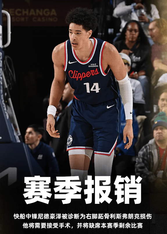 快船表示,中锋亚尼克-科南-尼德豪泽被诊断为右脚跖骨利斯弗朗克(Lisfranc)损伤。他将需要接受手术,并将缺席本赛季剩余比赛。 NBA常规赛快船主场对阵步行者的比赛已经结束。全场战罢,快船以130-107战胜步行者。 第二节比赛中,尼德豪泽落地右脚受伤,右腿不能落地被架出场。
