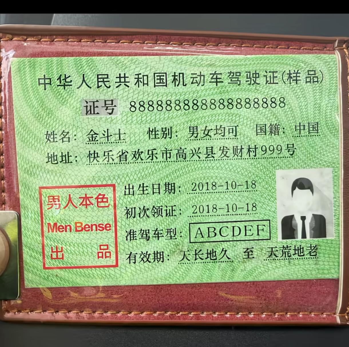 “这位男子凭实力火上人民日报啦!”一名男子被交警拦下查驾驶证,谁知他掏出了一张自己做的奇葩驾驶证企图蒙混过关,上面的信息笑掉人大牙,如“性别:男女均可;车型:ABCDEF......”最终男子“喜提”罚款与10日行政拘留。网友笑疯了:给叔叔这样的“限量版”,你也是“勇气可嘉”! (来源:人民日报) 近日,西藏那曲,两名交警在执行路面检查时,拦下一名男子核查驾驶证。其实这只是普通的核查,没想到竟真查出了一个“大问题”。 视频里,这名男子淡定地拿出一本驾驶证递给了交警同志,交警同志翻开一看,差点没气得背过去。 只见那本“驾驶证”上竟赫然写着这样的信息:证号18个8;姓名:金斗士;性别:男女均可;地址:快乐村欢乐市高兴县发财村999号;出生与领证日都是2018年10月18日;车型:ABCDEF(全车型通吃);有效期:天长地久-天荒地老。 更无语的是,证上还盖了个“男人本色”的红章。 这真是令人万万没想到啊,这名男子竟云淡风轻地递给帽子叔叔这样的“限量版”证件,估计觉得自己很酷、很帅。 显然,这是男子自己制作的一张假驾驶证,证上的信息无一是正儿八经的真信息,全都是荒唐至极的搞笑信息。 那男子为何要这么做呢?之后经交警核查,原来男子并没有取得任何合法的机动车驾驶证,因此故意伪造了那么一张“限量版”搞笑驾驶证妄图蒙混过关,估计也在赌交警不会仔细看。 但交警岂是随随便便就能糊弄过关的? 男子已经涉嫌两项违法,性质十分严重:一是完全没有合法驾驶证,属于无证驾驶,二是出示自制“限量版”假证妄图蒙混过关,属于伪造证件。如果情节严重,还可追究刑责。 而“无证驾驶”为处罚核心。 根据《道路交通安全法》99条及96条规定,男子被依法处以罚款及10日行政拘留,假证被没收。至于罚款多少,官方通报并没有详细披露。 不得不说,男子的行为真是毁人三观了,完全是在耍小聪明及心存侥幸心理,他认为自己会开车就行,有证没证不重要,甚至还弄了一个奇葩假证来装酷、博眼球。他以为自己很帅很酷,实则蠢到家了。 这种心态非常危险,就是在拿法律当空气,拿自己与他人的生命当儿戏,没驾照就敢上路。不懂交规,不懂应急处理,不管路人死活,还整个“天长地久”的破证,不是蠢就是坏!这种侥幸心理,一旦出事就很可能家破人亡,现在拘留10天与罚款算很轻的了。 这件事看上去很搞笑,但实则荒唐又危险,不过事件传播开来也是对全民的再一次普法教育,并起到深刻的警示作用。 警钟长鸣:千万不要拿自己和别人生命开玩笑,无证驾驶十分危险,伪造假证一查一个准,否则后果不堪设想,悔之晚矣!