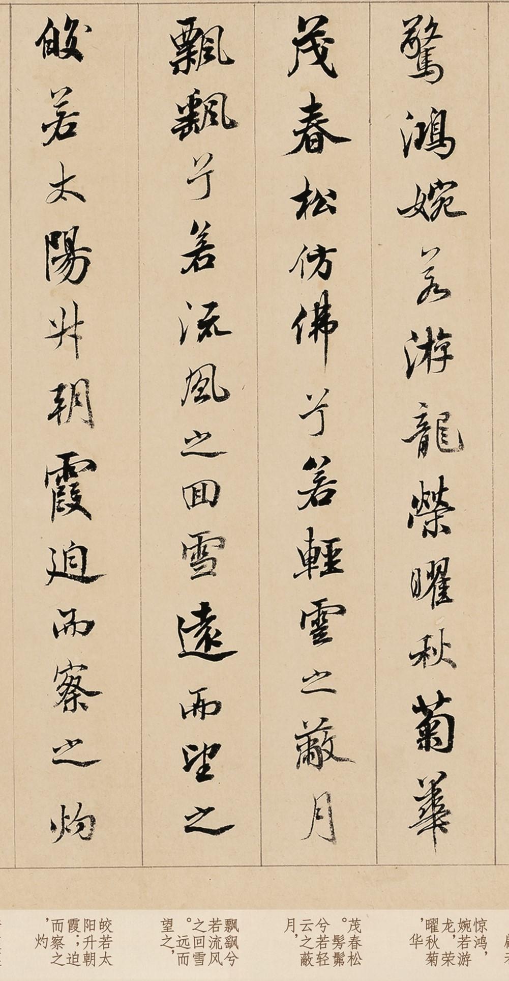 看看乾隆儿子的书法,比赵孟頫的字还美,不愧为清代书坛“天花板”! 乾隆的书法差劲,可谓是众所周知的事情,别看他的技艺不高,但是对于书法的热爱,却是难逢敌手,这种精神也影响他的儿子,此子整日摹帖,参悟古法,谁料最后真的成为“巨匠”。 乾隆这位令人意外的儿子,便是成亲王永瑆,在其他皇子一心争夺皇位时,成亲王扑在法帖之上,分析笔画,领悟气韵,把宫内藏帖遍临一遍,甚至为了掌握董其昌的笔法,去向老太监请教。 正是因此,成亲王练就一手绝美书法,字字畅意舒和、优雅灵动,比赵孟頫的字还美,既得其俊美姿态,还毫无柔媚之类问题,《清史稿》记载,“高宗诸子多擅文学,尤以成哲亲王为最,词章书翰,无愧古人。” 嘉庆也称赞:“深得古人用笔之意……近日朝臣文字之工书者,罕出其右”,当年成亲王的法帖,一度顶替“馆阁体”,成为官方制定范本,譬如这幅《行书洛神赋》,常被学子、墨客临学。 此帖是其40岁左右,抄写的曹植《洛神赋》,全卷总长度约为3.5米,共计990余字,以行书写就,笔画方圆尽备、遒和自如,中锋运笔,起承转合干脆利落,毫不拖泥带水,极尽明快秀丽之美。 近代的大师启功先生,十分欣赏董其昌的书法,曾称赞曰:“有清书家,有‘成刘翁铁’之目。成王爵高,学问又足以济之。试读《诒晋斋集》,可知非率尔操觚者,谓其为爵所掩,亦无不可也。兹故不论。” 他认为成亲王是清代书法“天花板”,继承正统,学问也高,非一般书家可比,“启功体”就是源于此处,这幅《行书洛神赋》将其行书之美,展现的淋漓尽致,还是罕见真迹。 全卷完整无损,字迹清晰、生动,非常值得临摹,通过成亲王明快、干练的笔势,切实掌握古人笔法,初步领会行书丰富、生动的姿态变化,为日后深入晋唐,奠定基础。 而今,我们对成亲王《行书洛神赋》,进行1:1超高清复刻,采用博物馆级别,12色微喷复刻工艺,与原作毫无二致,此品乃是手工经折装,装裱精细,便于翻折、临摹和查找。 全卷加入现代字注释,帮助初学者识读,此帖极为高清,市面罕见,独此一家,比普通印刷品还原、细腻,所有字体的细节处理,全都一览无余,见此品如见原作,若您喜欢可以点击下方商品链接一观。 成亲王行书洛神赋 高清原大复刻手工经折装印刷书法
