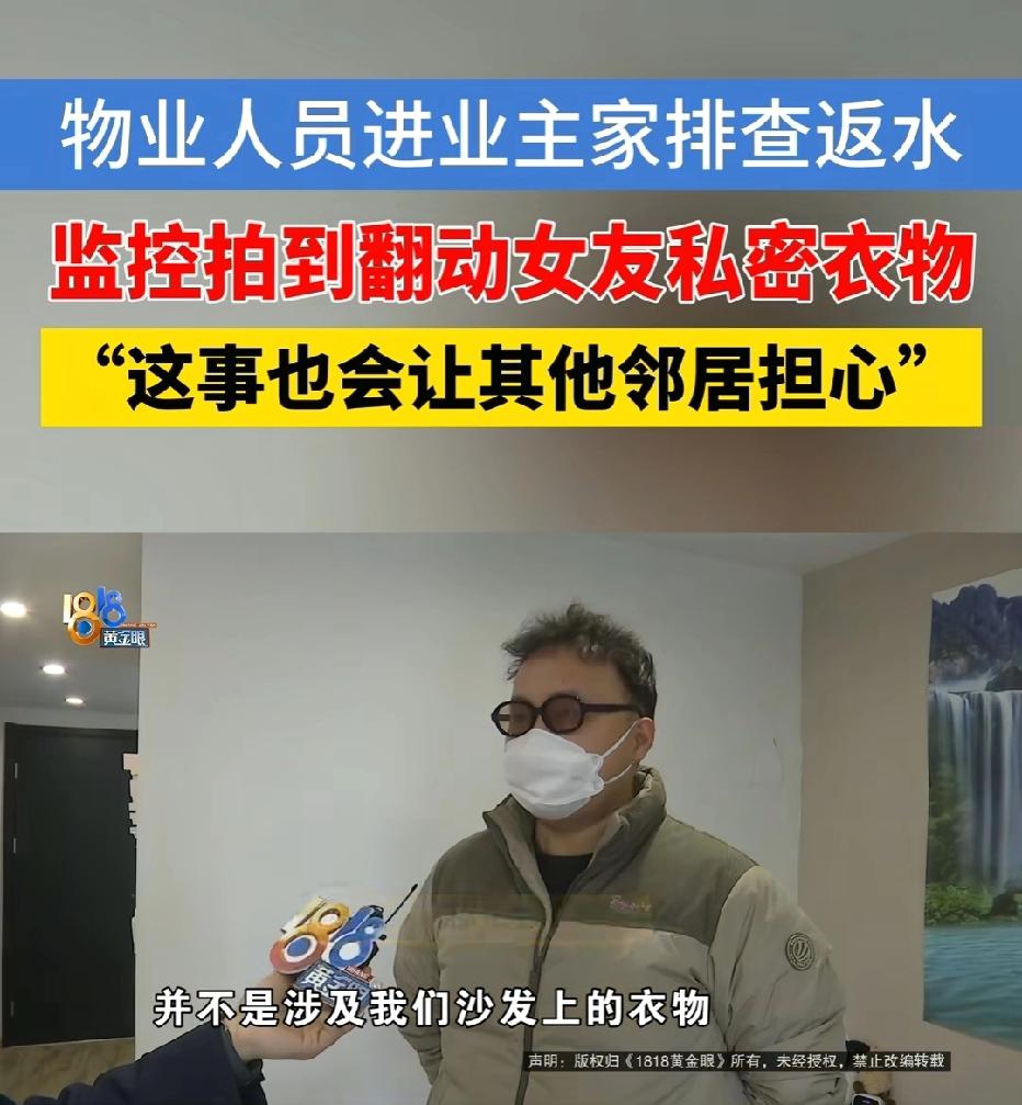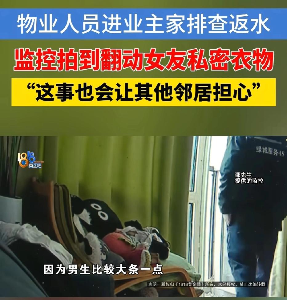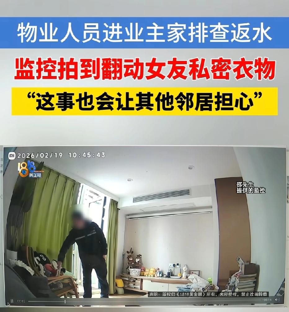 浙江杭州,男子带女友回老家过年,物业称他家中漏水需上门处理,男子将房门密码告知对方。不料,女友查看家中监控,竟拍到物业人员擅自拿起她的贴身内衣反复翻看,女友当场崩溃。两人找物业讨要说法,物业却辩称:只是检查衣服有没有受潮。男子无法接受,网友怒评:这理由谁能信? 邵先生本来高高兴兴带着女友回老家,心里想的就是过个踏实年,可物业一个电话,直接把这份安心全打碎了。 物业说他家返水了,得马上上门处理。 邵先生人在外地,回不去,也不想耽误事情连累邻居,出于最基本的信任,他想都没想,就把家门密码告诉了物业。 他以为,工作人员就是去修个漏水,干完就走,安安全全、规规矩矩。 他怎么也想不到,接下来会遇上这么让人窝火又恶心的事。这种委屈,但凡换个人,都忍不下去。 那段时间,邵先生和女友还在老家,根本没回杭州。 女友心里一直不踏实,总惦记着家里漏水到底严不严重,就想着打开监控看一看情况,心里好有个底。 她没有任何怀疑,也没有一点防备,可就是这一看,直接让她整个人都崩了。 监控里的画面,看得人头皮发麻,又气又恶心。 上门的物业工作人员,明明是去卫生间修漏水的,竟然伸手去客厅沙发拿她的贴身内衣,还在那里翻看。 这和工作没有半毛钱关系,这就是完完全全的冒犯,是踩碎别人隐私的缺德行为。 女友当场就受不了了,又怕又气,浑身都不舒服。 邵先生一看女友情绪崩溃,再看到监控,心里那股火直接冲到头顶。 两人再也待不下去,急匆匆收拾东西,立刻赶回杭州。家本该是最安全的地方,可这一刻,只剩下被冒犯的阴影,挥之不去。 回到家,邵先生第一时间去找物业要说法。他要的不多,就是一个实话,一个态度,一个道歉。 可物业做的事情,更让人心寒。一开始,他们死活不承认,一副无辜的样子,想把事情糊弄过去。 直到邵先生把监控甩在他们面前,铁证如山,赖不掉了,物业才随便找了个荒唐的借口,说只是看看衣服潮没潮。 这种话,骗谁呢?这不仅不认错,还在往人伤口上撒盐。 实在没办法,邵先生只能找记者来帮忙。他不是想闹事,他就是想讨个公道。 记者介入之后,物业终于松口,给出了一个处理结果,罚那个员工500块钱,给邵先生免一年1700块的物业费。 听起来好像处理了,可邵先生一点都不满意。 他心里清楚,自己要的从来不是这点钱。女友受到的伤害、心里的阴影、被践踏的隐私、被丢掉的尊严,根本不是用钱就能抹平的。 物业这么做,不过是想快点把事情压下去,根本没有真心道歉,也没有真正意识到自己错得多离谱。 这件事想起来就让人憋屈,你把家交给物业,是信任。物业拿着你的密码进门,是责任。 可最后,信任被踩在脚下,隐私被随意侵犯,出了事还要被敷衍、被搪塞、被拿钱打发。这种委屈,换谁都难以接受。 邵先生要的从来不是赔偿,而是尊重。可惜,从头到尾,他都没有得到。 他女友因为这件事情绪彻底不对劲,变得敏感又脆弱,晚上经常做噩梦,甚至不敢一个人待在家里。 邵先生称,他会继续维权,不为别的,就为了给女友讨一个公道,让她能睡个安稳觉。 《民法典》第1032条规定:自然人享有隐私权。任何组织或者个人不得以刺探、侵扰、泄露、公开等方式侵害他人的隐私权。 邵先生仅同意物业上门处理漏水,并未授权触碰或翻看贴身内衣。 涉事员工进入住宅后,超出授权范围翻看私密物品,属于典型的刺探、侵扰私密空间与私密物品。 物业所谓“看衣服潮没潮”的理由不成立。漏水检修无需触碰贴身内衣,该行为与职务行为无任何合理关联,不能作为免责或减轻责任的依据。 如果邵先生不满意,完全可以不接受。他可以拿着监控证据,向法院提起诉讼,要求物业正式道歉并赔偿损失。 对此你怎么看?