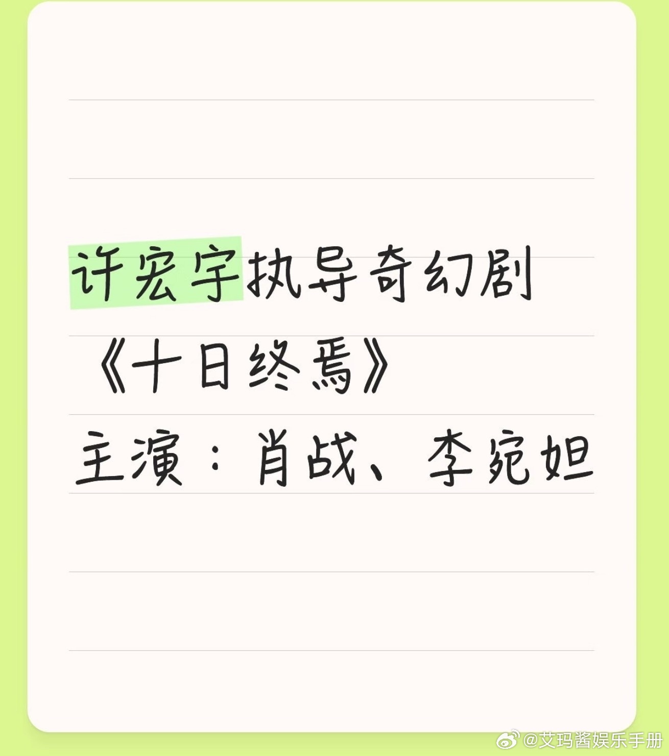 肖战《十日终焉》🫓女主从艾米 杨超越传到李宛妲了,李宛妲之前出演过《叶问4》《异人之下》《北上》,待播剧有和吴磊合作的《剑来》,这次和肖战两人合作,你期待值如何?肖战李宛妲 十日终焉