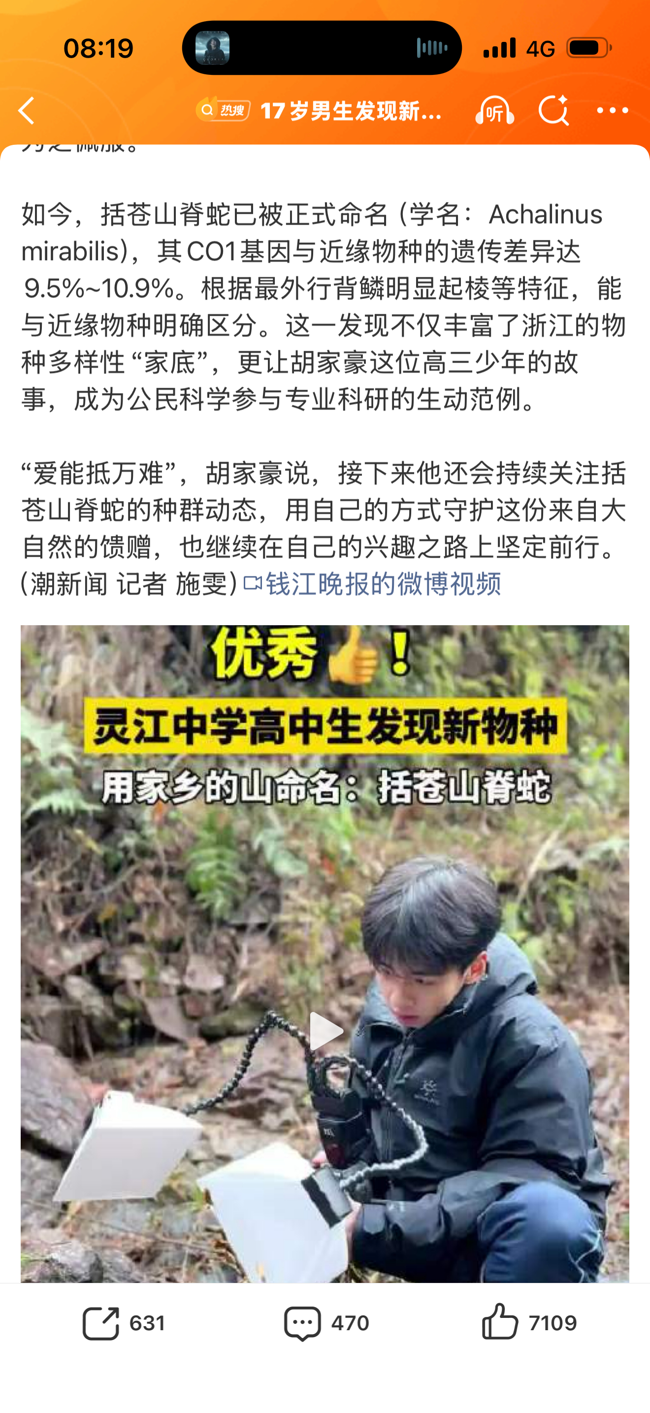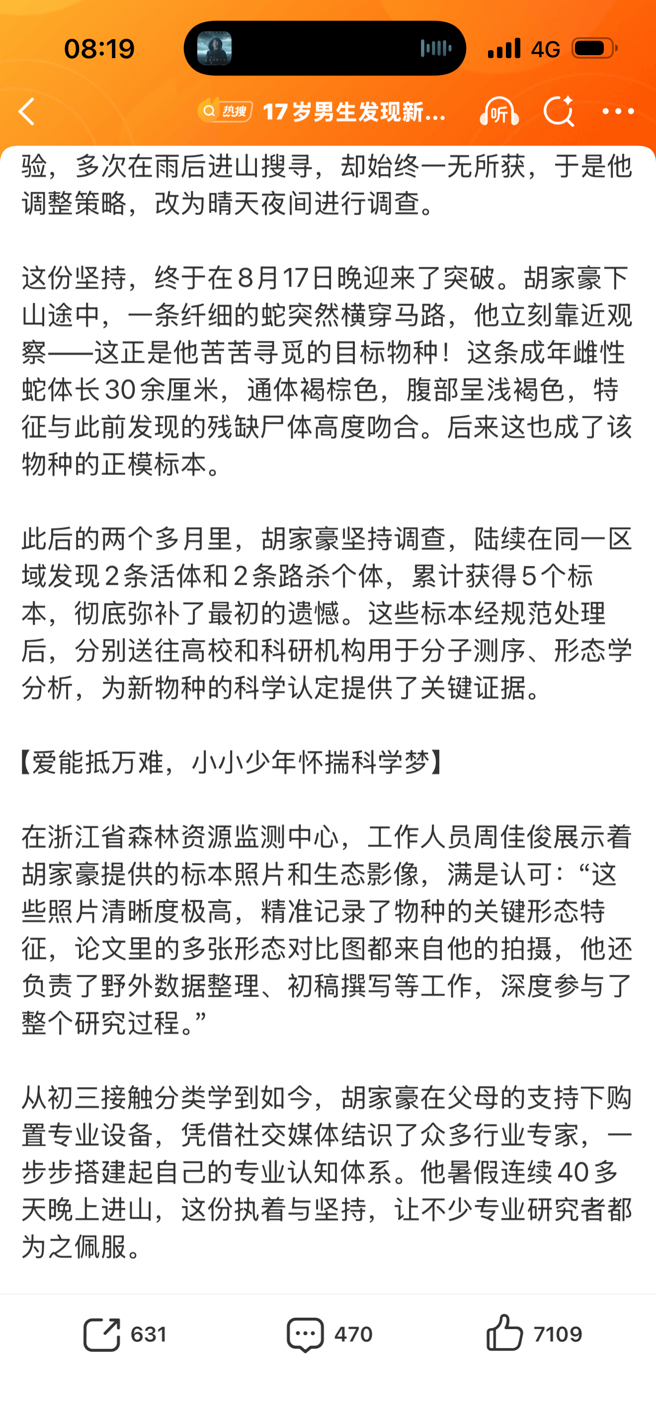 17岁男生发现新物种筷子蛇登上SCI这种年轻人的励志故事为什么现在翻车翻那么厉害?主要就是社会可观环境变化实在太快了,现在还用原先的办法写东西,读者不认了。