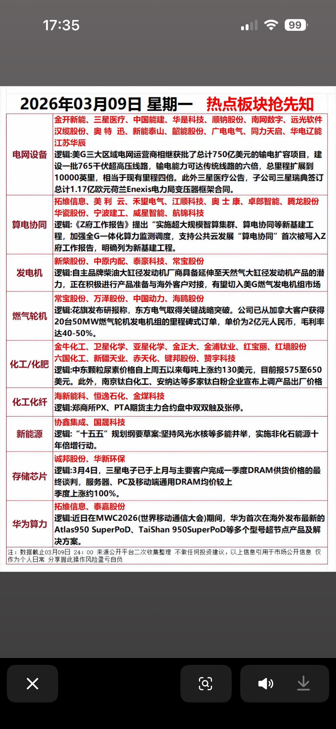 "3月9日星期一电网升级+算电协同引爆新基建!变压器出海、燃气轮机突破,化工品涨价潮延续,存储芯片、华为算力新品抢镜全球通信展"