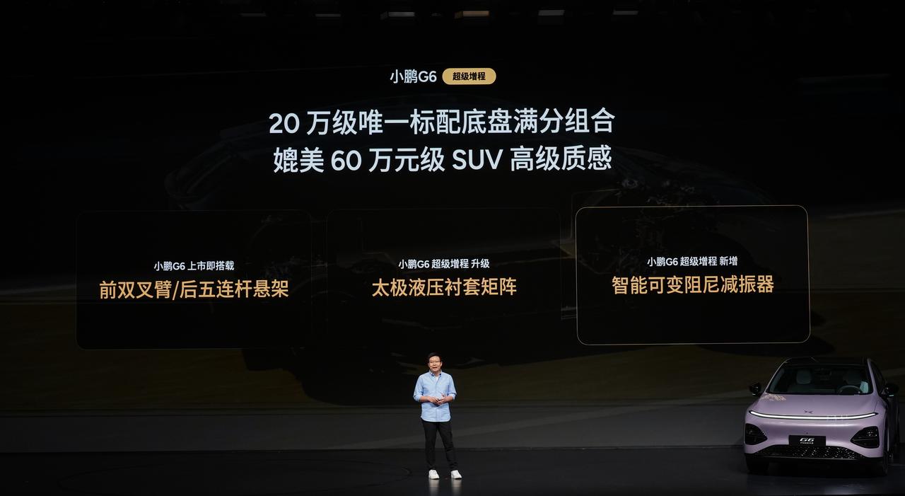 小鹏G6超级增程上市,本次共发布1704 Max,Ultra SE和Ultra三个版本,售价18.68万起,Ultra SE加1.2万,两颗图灵AI芯片。 Ultra加2万,三颗图灵AI芯片,第二代VLA和VLM大模型。3月31日24点前下定,享最高3万多元的限时权益礼包。 -1704km综合续航,430km纯电续航,全系标配800V+5C,12分钟补能314km。 -最大算力2250TOPS,搭载第二代VLA物理世界大模型,有L4级智驾能力 -喝92油,联合嘉实多研发2万公里一换的增程专用机油,主打成本低。 -ENC+RNC双源主动降噪,标配前双叉臂/后五连杆,太极液压衬套矩阵+智能可变阻尼减振器。 -大空间,前排1060mm、后排1021mm头部空间,后备箱635L,可扩展到1740L。 -130km/h速度可实现 AEB 主动刹停,具备AES主动避让能力,通过多项高速与湿滑路爆胎测试。 小鹏这波料下的挺猛,把很多技术下放到20万以内了,另外3月11日起,全国732家小鹏门店开启第二代VLA试驾,试试新技术没啥毛病,体验最重要!【来自懂车帝车友圈】