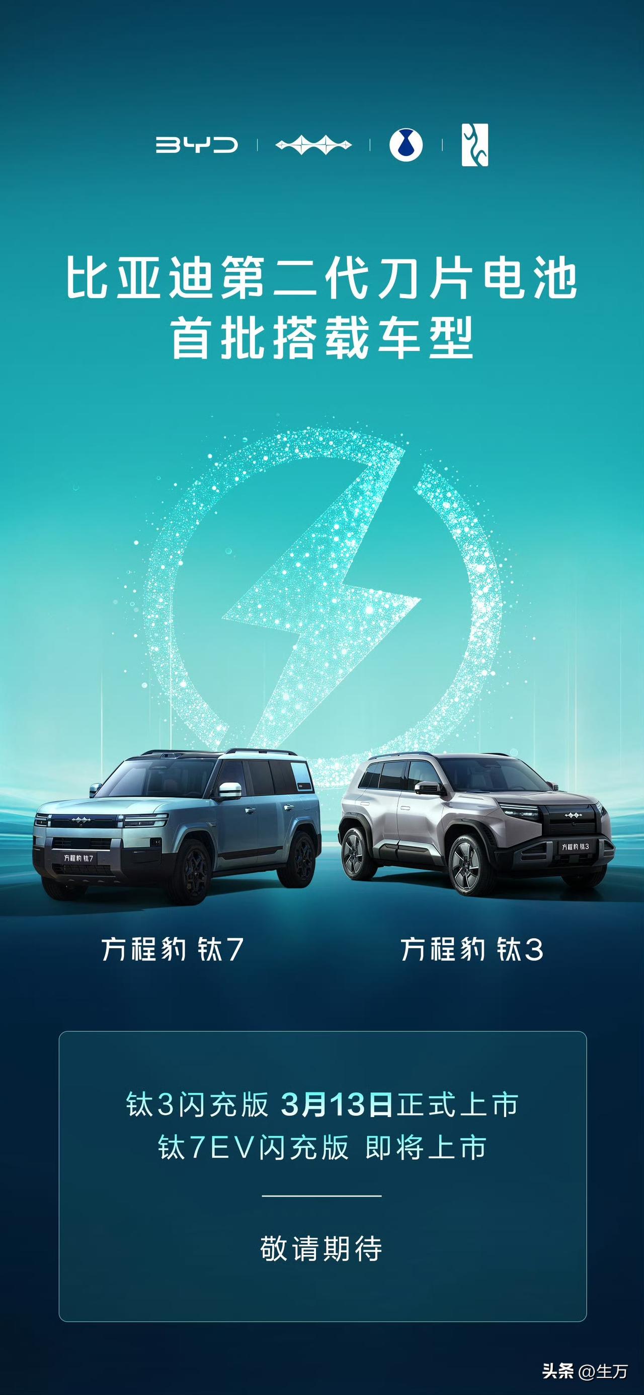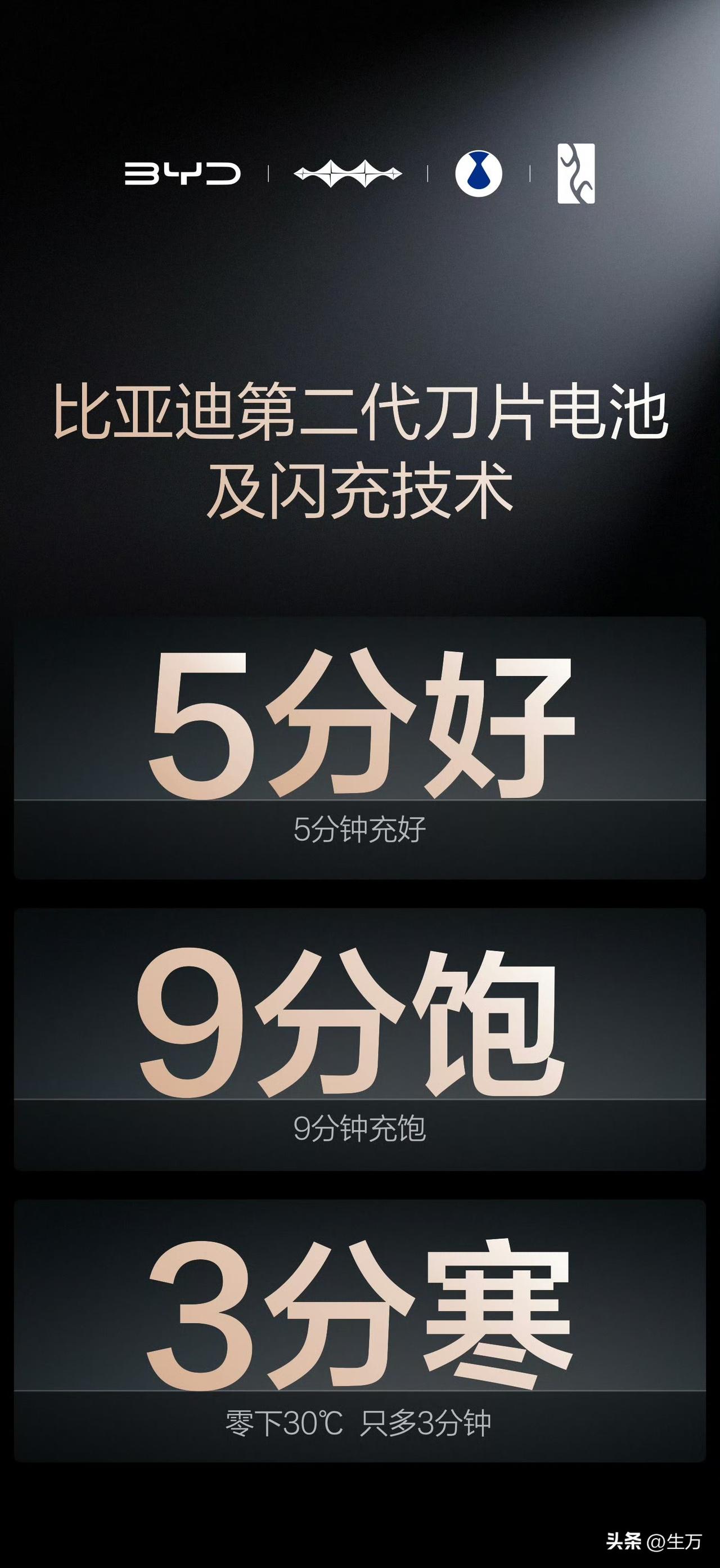 比亚迪:这11款车型,搭载比亚迪第二代刀片电池! 昨天晚上王传福在直播的时候,发布了比亚迪第二代刀片电池之后,不管是最贵的仰望UL那个130万粉丝豪华车,还是最便宜的,10多万的宋系列,都能够享受到第二代刀片电池带来的不同。 但是具体有哪些车型,刚才比亚迪的官方是该账号详细的列出来了,目前来看最便宜的应该就是刚才提到的这个宋ultra Ev系列才150,000开头,而且这还是这个车的预售价格,估计到时候正式发售的话可能就14万多。 其次就是那个大大的,红色的大唐系列,再其次就是海狮海豹系列,然后就是方程豹的两款,一个是方程豹钛7另一个是钛3。不过目前这两个系列的闪充版本要等到13号才正式的上市。 其次就是昨天晚上上市的腾势Z9 GT版本,最后就是仰望的三个版本,分别是昨天晚上刚刚上市的仰望U7和仰望U8以及仰望U8L,当然仰望U8L当中,最贵的就是那个特殊版本,售价超过了130万。 这就是这具体的11个车型,我们可以看到,从预售价150,000左右,到最贵的1,300,000左右的,跨度如此大的好几款不同的车型,比亚迪都用到了他们最新的第二代刀片闪充电池技术。 所以可以比较直观地看到,比亚迪现在无论是从战略上还是在战术上,就是要尽快地把这个技术普及开来,现在最迫切的,还得是实现他们在今年,要建20,000个充电站,只有把这个事情完全落实下来,用户的体验感可能才会与之前完全不一样。