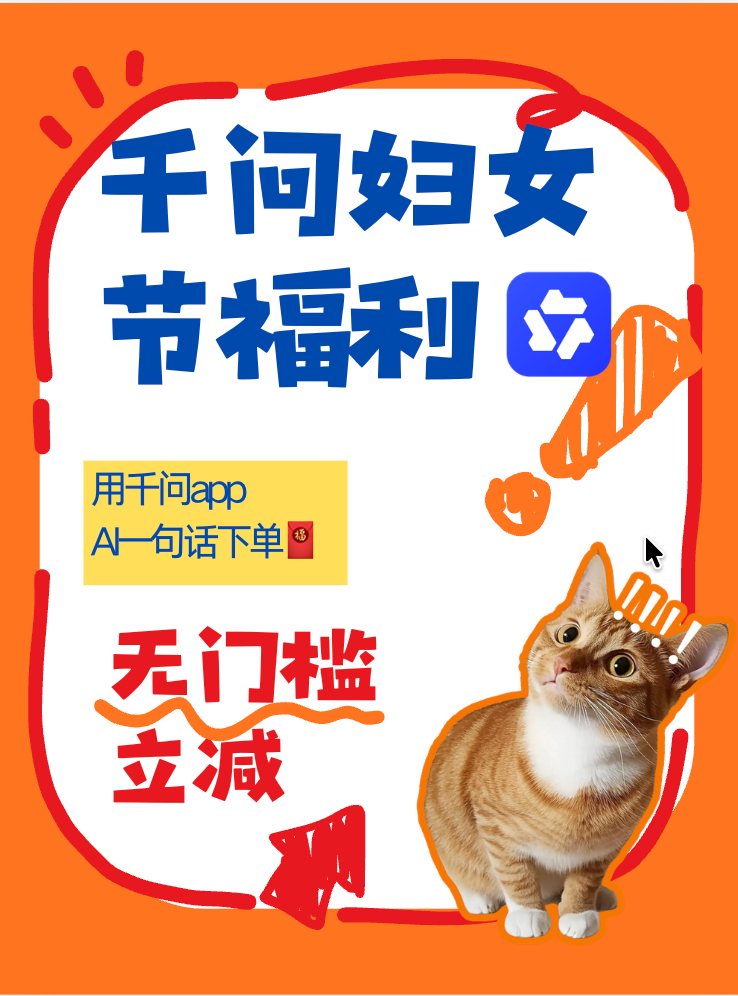千问AI一句话下单无门槛立减千问真的焊死在宠粉模式!春节刚宠完,三八节又马不停蹄加码送!用千问APP,AI一句话下单很方便,还能Get无门槛立减优惠,AI把我们养得真的很好~已经用千问火速给妈妈下单了一束鲜花~爱自己也爱妈妈,双倍幸福稳稳拿捏!千问宣布妇女节再次请客千问
