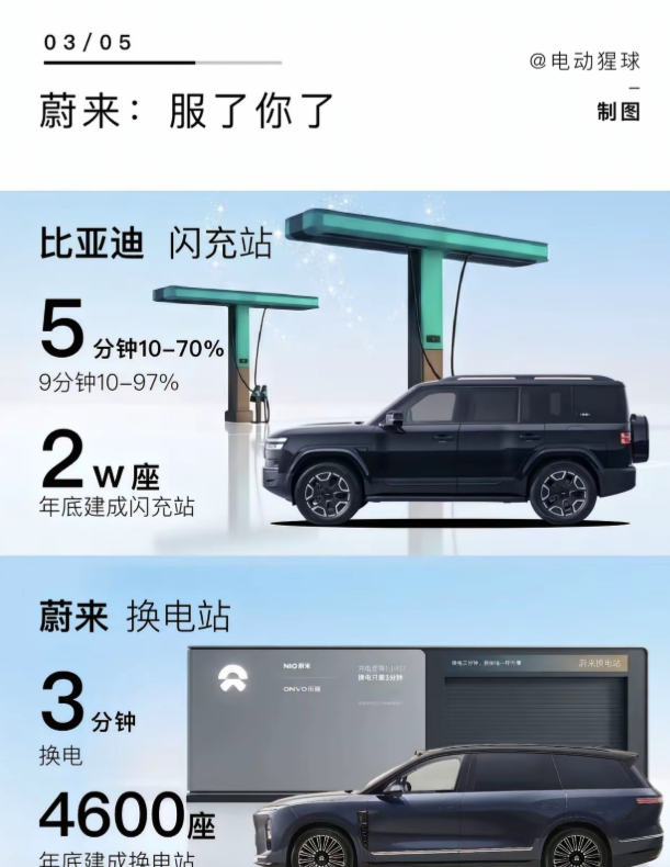 如果真的5分钟补能400km,真跟加油差不多了,确实是拉个屎都没时间。 可惜前提是有一辆比亚迪支持兆瓦闪充的车子。 不支持闪充的也能使用闪充站补电,高峰期普通车去使用闪充就会造成效率下降,又跟普通充电桩一个样了。