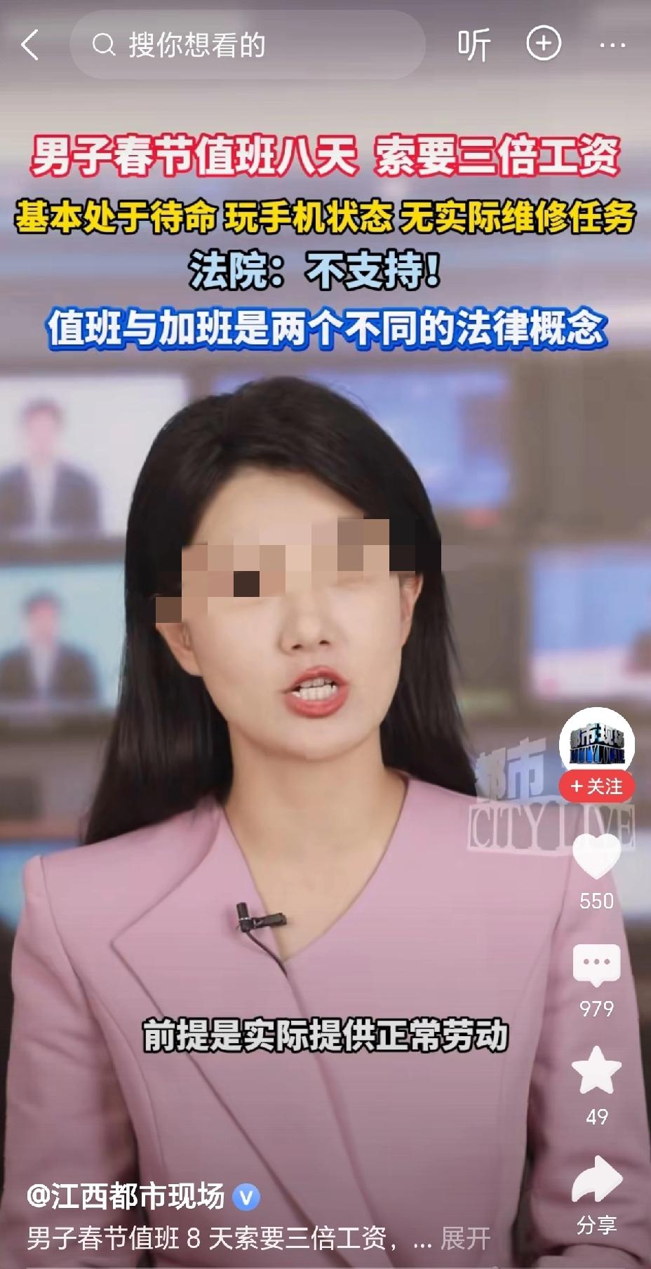 江苏无锡,一男子春节留守公司值班8天,满心期待3倍工资,结果收假后老板以他只是待命没实际维修为由拒发,损失6240元。男子多次索要无果后起诉了公司,法院驳回了男子的诉求,理由是值班和加班是有区别的!引发网友热议:法定假日不都是三倍工资吗?法律真不是这样的,值班和加班真有本质上的区别! 江苏无锡,机电维修工须某握着那张二审判决书,整个人都傻了。2026年3月的春寒料峭,可他心里比这天气还冷——那6240块钱,彻底没了。 说实话,这事儿要是搁在以前,谁能想到会闹成这样? 今年春节前,公司找到须某,说岗位特殊,要求他初一到初八留守值班。须某当时没多想就答应了,心里盘算得清清楚楚:8天假期,按法定节假日3倍工资算,那就是6240元!这笔钱够给家里添台大电器的,也能给孩子包个厚实的红包。 大年初一到初八,整座城市都沉浸在爆竹声和团圆饭的香气里,须某却守在空荡荡的厂房。打卡机每天准时"滴"一声,他哪儿也不敢去,像个哨兵似的守着那些冰冷的钢铁机器。家里的年夜饭没赶上,孩子的压岁钱没亲手给,老人的唠叨也只能在视频里听着——这一切,他都忍了。 可命运跟他开了个天大的玩笑:这8天里,厂房的机器出奇地"听话",连个小毛病都没出!须某每天的生活枯燥得要命,除了盯着手机屏幕划来划去,就是坐在操作台前发呆。整整192个小时的孤独守望,他没拧过一个螺丝,没换过一件轴承,甚至连工具箱都没打开过。 收假后的工资条,像一记响亮的耳光。那一栏本该跳着数字的"加班费",空空如也。 须某去找人事理论,对方冷冰冰地甩出一句:"你那叫待命,不叫加班。"找老板质问,得到的答复更像是往伤口上撒盐:"机器又没坏,你干什么活了?没干活凭什么要三倍工资?" 这逻辑让须某觉得荒唐至极。难道为了随时应对可能的故障,放弃跟家人团聚的整整8天,在法律眼里竟然是透明的?他带着8天的打卡记录,抱着"稳赢"的心态走上法庭。 然而,江苏法院的两审判决,像一盆冰水从头浇到脚。 法官在判决书里划出了一条深不见底的鸿沟:值班不等于加班。 按照《劳动法》第44条和《工资支付暂行规定》,法定节假日拿3倍工资的前提是"实际提供劳动"。法律的视角极度理性甚至冷酷:须某的职业是"机电维修工",如果他在初三修好了机器,那几个小时算加班。但他只是坐在那儿等机器坏,这就叫"值班"。 在现行司法逻辑里,加班意味着高强度的经营性生产,而值班被定义为"应对突发、低强度且可休息"的非生产性逗留。因为须某没法证明自己在这8天里"动手"了,他所谓的牺牲,在举证责任面前显得苍白无力。 消息冲上热搜,舆论场瞬间炸了锅。 有人说法律就该这么严谨:规矩就是规矩,如果坐在办公室刷手机也能拿3倍工资,那对真正在流水线上挥汗如雨的人何其不公? 但更多的人在为须某鸣不平。这种不平带着一股感同身受的愤怒:既然不算加班,那公司凭什么限制须某的行动自由?凭什么要求他必须"按时打卡"且"不敢离开"?你让人守着,又不给钱,这不是耍流氓吗? 这种矛盾在对比中显得格外刺眼。在医院、消防或者许多事业单位,春节值班哪怕只是在那儿"睡大觉",除了基本工资,往往还有专门的值班津贴。而在须某待的这家私企,老板精准地利用了法律定义的灰色地带,把员工的"待命成本"直接转嫁到了员工个人头上。 这就是一家公司格局的分水岭。在2026年的职场环境里,有的公司会给守岁归来的员工发开工利是,会为春节留守的工友送上暖心补助。而有的公司,则在严丝合缝地算计着法律的每一条边际,用"没干活"三个字,抹杀掉一个中年人对家庭的全部亏欠。 须某输掉了官司,但也揭开了一个隐蔽的职场真相。 这种"被悬置的时间"——既不能自由支配,又不被算作正式劳动——在现有的劳动保障体系中,依然像是个无人问津的黑洞。它吞噬了须某的春节,也吞噬了无数普通打工人对"劳有所获"最朴素的信仰。 对于须某们来说,未来的春节安排如果只停留在口头承诺,那终究只是一场虚幻的泡沫。法律确实不保护这种"在场的空白",但人心会记录下每一次被法律准则武装起来的压榨。 在这个春天,须某没拿到那6240元,但他用这笔高昂的"学费"告诉了所有人:在老板要求你"盯着点"的时候,如果没有那张盖了章的报酬确认书,你守护的可能只是空气,而非工资。别以为打了卡就万事大吉,这年头,吃哑巴亏的永远是我们这些老实人。