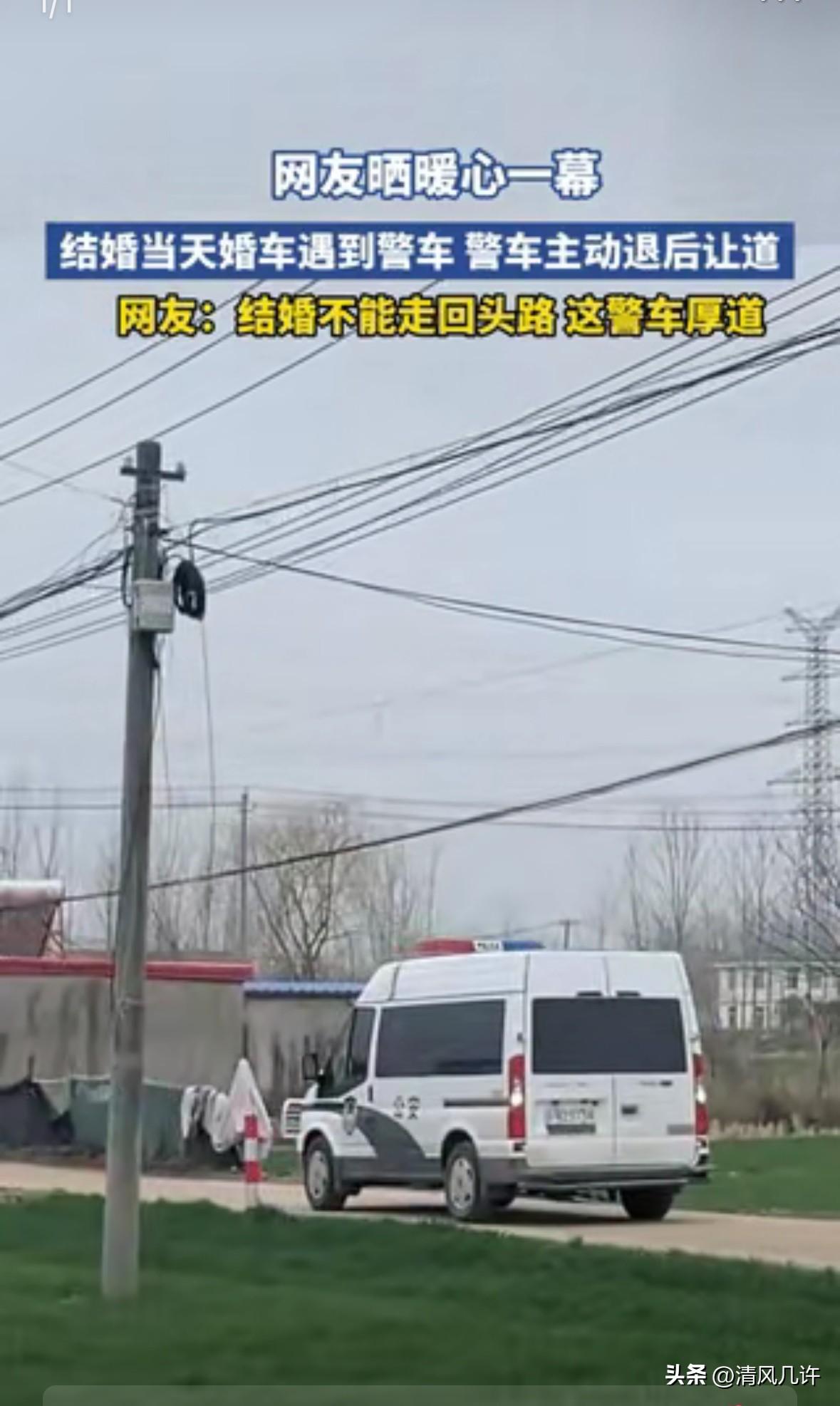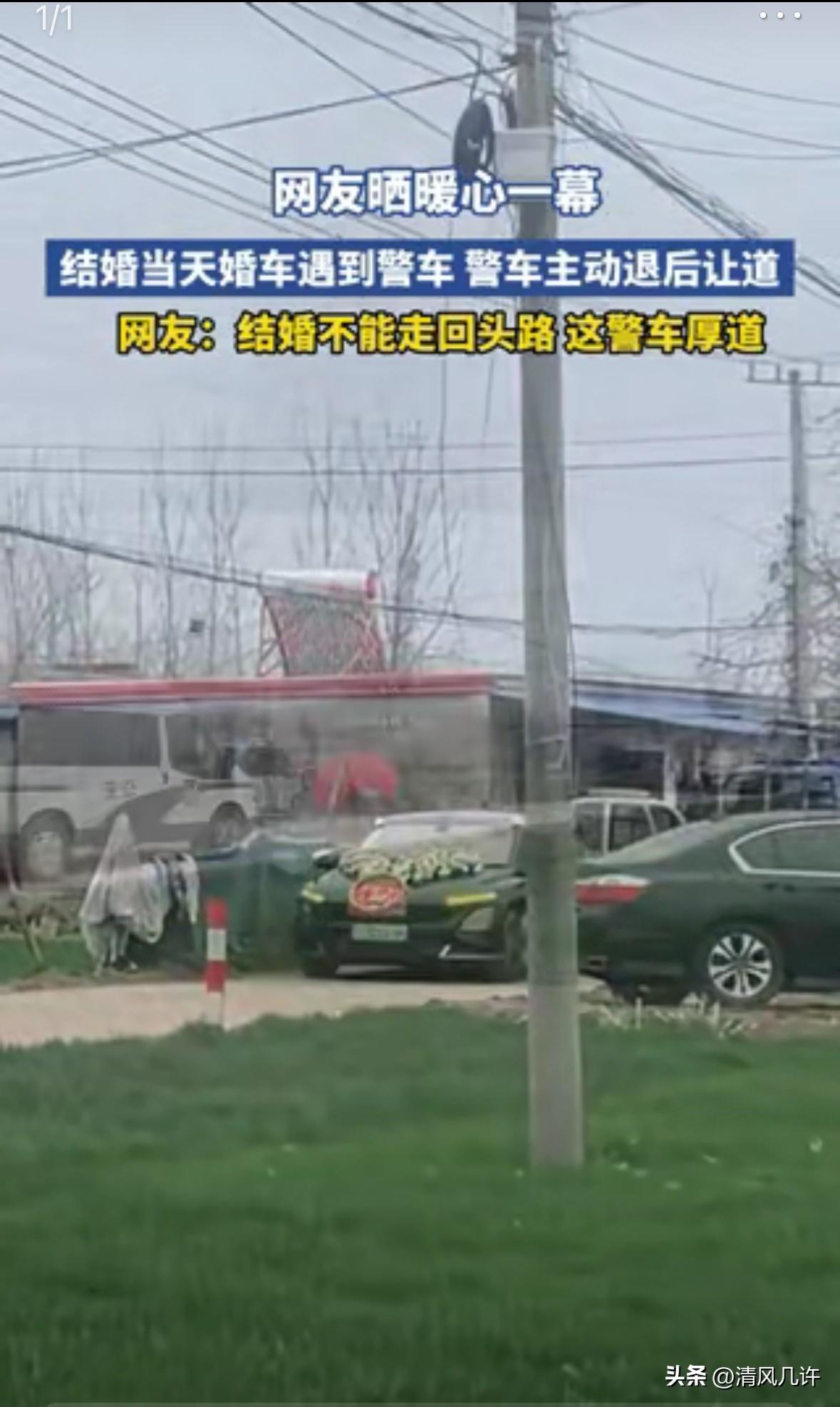 格局打开了,江苏,一对新人结婚,婚车驶出村庄时,恰巧遇到一警车。结果,警车见状主动后退让道,看的让人暖暖的!网友:“结婚不能走回头路,这警车真厚道!” 事发在2026年3月4日的江苏宿迁沭阳,当天午后的乡间小路上,红色的婚车队伍正按着预定路线,缓缓驶出新娘所在的村庄。 当地流传多年的婚俗里,接亲路线一旦敲定就绝不能更改,婚车更不能倒车,老人们都说这代表着新人往后的日子只会一路向前,再也不会回头走弯路。这支婚车队伍的头车刚拐出村口,就和迎面而来的一辆警车撞了个正着。 这条村道是典型的乡村单车道,路面宽度刚够一辆车顺利通过,两辆汽车并排的空间都没有,更别说婚车队伍还有好几辆车跟在后面。婚车队伍里的伴郎最先发现情况,他坐在副驾上,手刚抬起来想提醒司机,整个人就先僵住了。 新郎坐在主驾旁,视线越过挡风玻璃看到警车的瞬间,原本带着笑意的脸立刻沉了下来。他心里清楚,警车此刻大概率在执行公务,按照通行规则,执行任务的警车拥有优先通行权,可自家的婚车又不能倒车,两边的难处撞在了一起,现场的空气仿佛都凝固了。 伴郎试着推开车门,想和民警沟通几句,话到嘴边又咽了回去。 他怕自己的请求会耽误民警的工作,更怕开口后被拒绝,让这场喜事添了尴尬。婚车司机也踩住了刹车,双手紧紧握着方向盘,眼睛盯着前方的警车,一时不知道该怎么办。路边围观的村民也停下了脚步,有人低声议论,有人拿出手机准备记录,大家都在等着看这场僵局该如何化解。 警车里的两名民警早就注意到了婚车队伍,他们没有拉响警笛,也没有打开警灯,只是先停下车辆,摇下车窗观察情况。 驾驶座上的民警扫了一眼婚车的装饰,又看了看路边贴着喜字的村民家门,瞬间就明白了眼前的状况。他和副驾的同事对视一眼,没等对方开口,就已经挂入倒挡,轻踩刹车,让警车缓缓向后退去。 乡间的路面不算平整,有几处浅浅的坑洼,民警握着方向盘的手很稳,每一次转动都恰到好处,避开了路边的碎石和沟坎。 警车的后轮碾过路面的小石子,发出轻微的声响,除此之外,整个倒车过程安静又有序。没有人催促,也没有人表现出不耐烦,两名民警的目光始终落在后视镜和前方的路面上,确保倒车的过程万无一失。这样的退让持续了二十多米,直到警车退到村口不远处一个稍宽的岔路口,才终于稳稳停住。 此时,整条村道都被让了出来,婚车队伍可以毫无阻碍地继续前行。新郎再也坐不住了,他摇下车窗,朝着警车的方向用力挥手,嘴里不停说着“谢谢”。 头车缓缓驶过警车旁时,民警们也放下手中的工作,笑着朝新郎和新娘挥手,副驾的民警还特意喊了一句“新婚快乐,百年好合”。这声祝福穿过车窗,落在新人的耳朵里,新娘忍不住红了眼眶,抬手向民警们鞠了一躬。 路边的村民们看到这一幕,纷纷鼓起掌来,有人大声喊着“这才是人民的警察”,还有人把刚刚拍下的视频发到了村里的微信群里,消息很快就传开了。 婚车队伍顺利离开后,新郎特意嘱咐伴郎,一定要找到这两位民警,送上喜糖表达谢意。当天傍晚,新郎带着喜糖来到了当地的派出所,通过值班民警,顺利见到了白天让道的两位同志。 新郎把喜糖递过去的时候,语气里还带着激动,他说自己当时真的以为要耽误吉时了,没想到民警会主动退让,这份心意让他和新娘一辈子都忘不了。 民警接过喜糖,拆开包装分给身边的同事,笑着说他们只是做了该做的事,执勤的初衷就是为了守护群众的平安与幸福,新人的大喜日子,自然要让他们顺顺利利。他们还透露,当天他们是在处理完附近的一起邻里纠纷后,驾车返回派出所的路上遇到了婚车队伍,并非紧急任务,这才有余地做出礼让的决定。 这段现场视频被传到网上后,迅速引发了全网关注。 沭阳公安也在官方平台上回应了此事,确认了事件的真实性,还表示这样的人性化执法,是民警们践行服务理念的日常体现。网友们的评论里,满是对民警的认可,有人说这份礼让里藏着对民俗的尊重,也有人说这就是执法的温度。 执法的刚性从来不是靠强硬的姿态体现,而是藏在对群众需求的体察里。民警的这把倒车方向,倒出的不仅是二十多米的道路,更是警民之间心与心的距离。 他们没有固守通行规则的教条,而是在不违反原则的前提下,用最温暖的方式解决了问题,让法律的威严与人性的温暖完美交融。这样的瞬间,看似微小,却能在人们心里种下信任的种子,让社会的温度在一次次双向奔赴里不断升温。 各位读者你们怎么看?欢迎在评论区讨论。