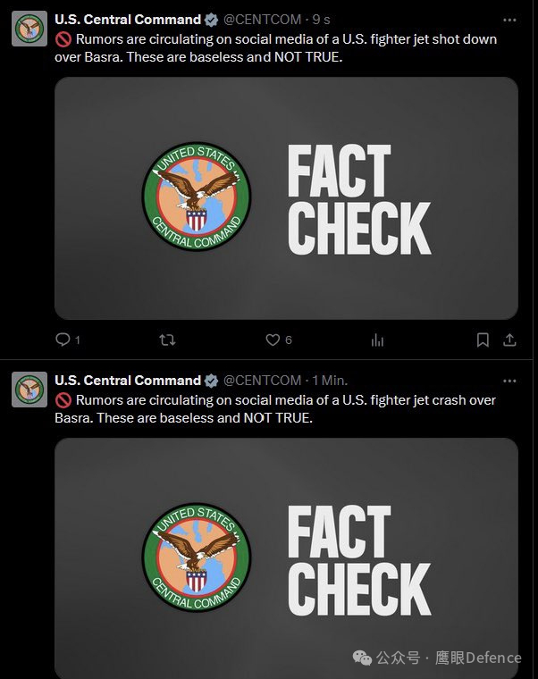 到下午,看到了美军中央司令部的回应,“社交媒体上正在流传有关一架美国战斗机在巴士拉上空坠毁的传闻。这些说法毫无根据,并不属实。”