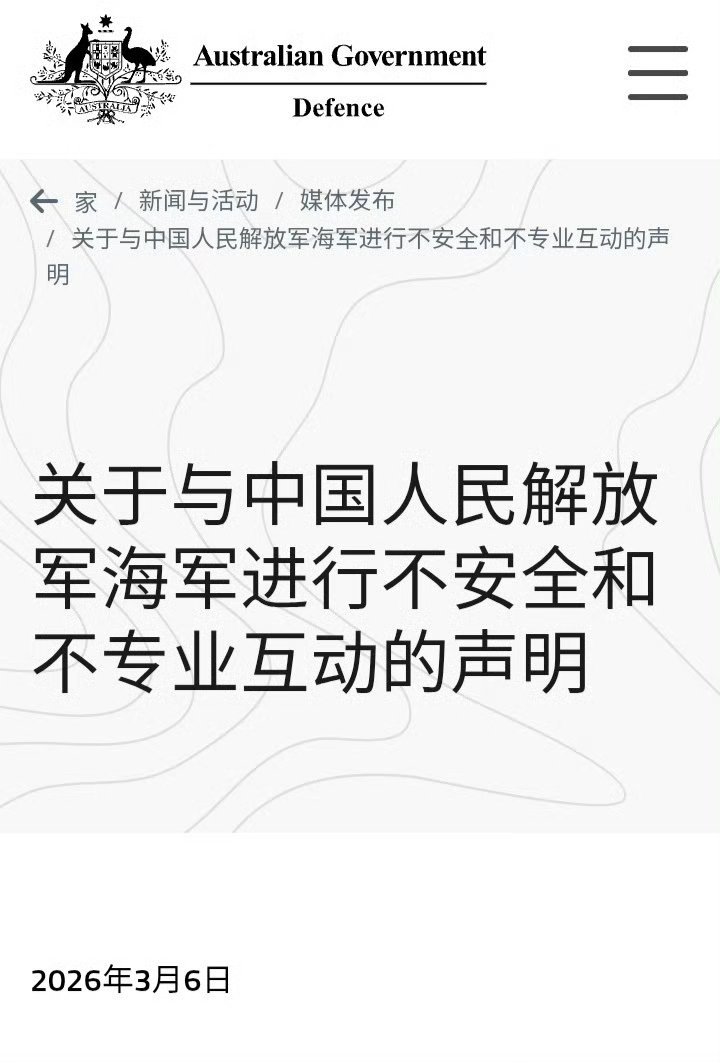 明明是澳大利亚直升机非法靠近我方领海,反道倒打一耙!澳大利亚国防部今天(6日)发布声明称,3月4日,一架中国人民解放军海军的直升机在黄海国际水域拦截了一架正在执行例行任务的澳军MH-60R直升机(从澳海军图文巴号护卫舰起飞的),与其保持相同高度,并接近到“不安全距离”。烽火问鼎计划热点观点