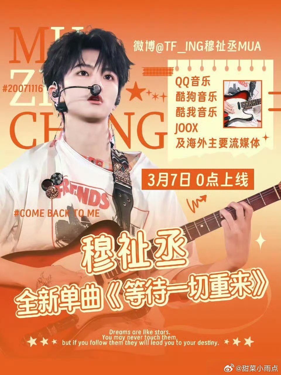 穆祉丞全新单曲《等待一切重来》今晚 0 点全平台上线哦!都来听馒馒的新歌~橙色粉色橙粉色,馒头爱用什么色用什么色!别多说,听新歌!
