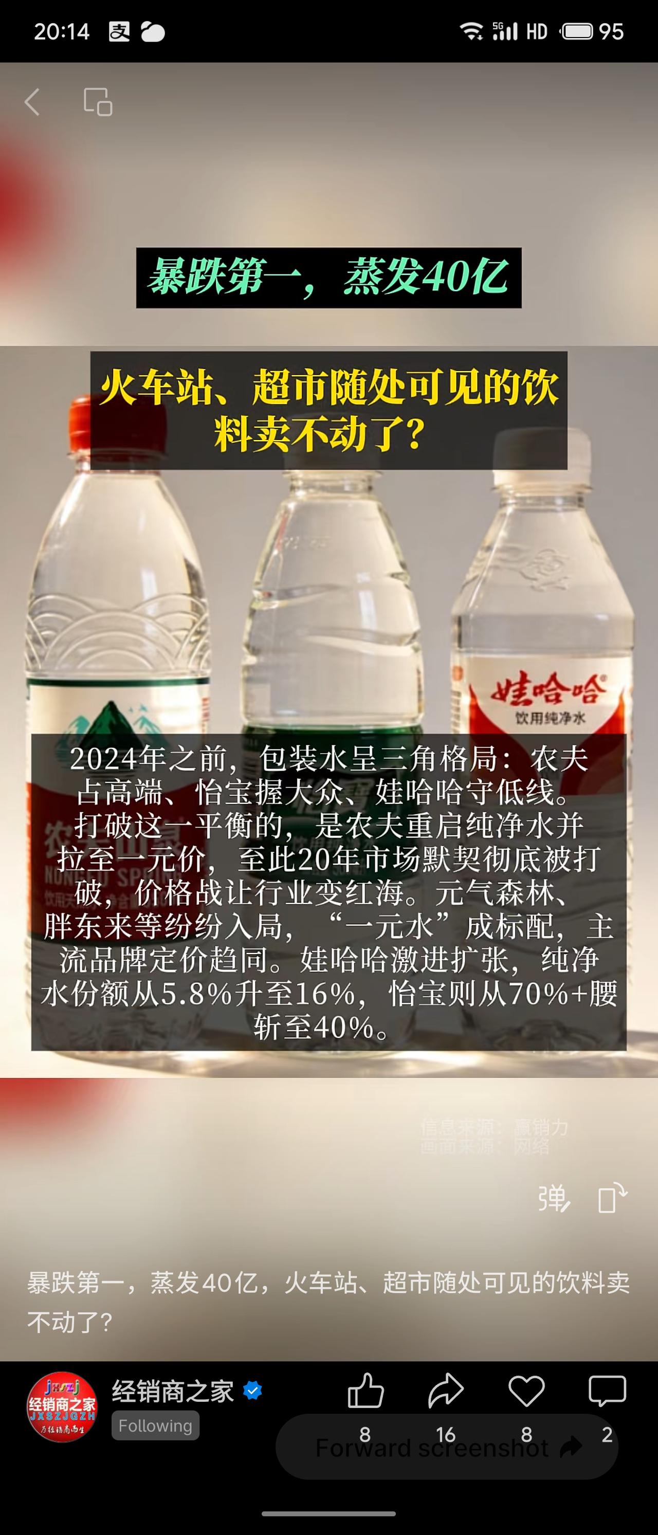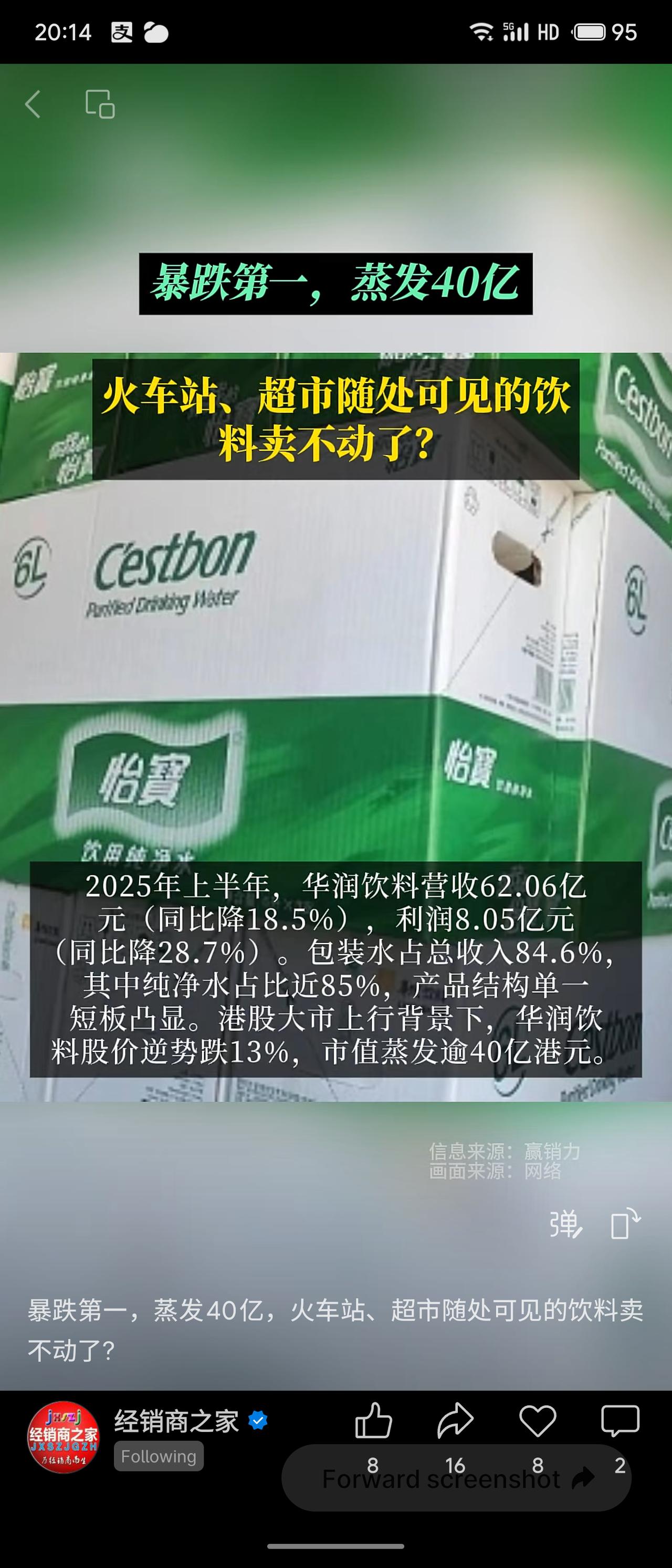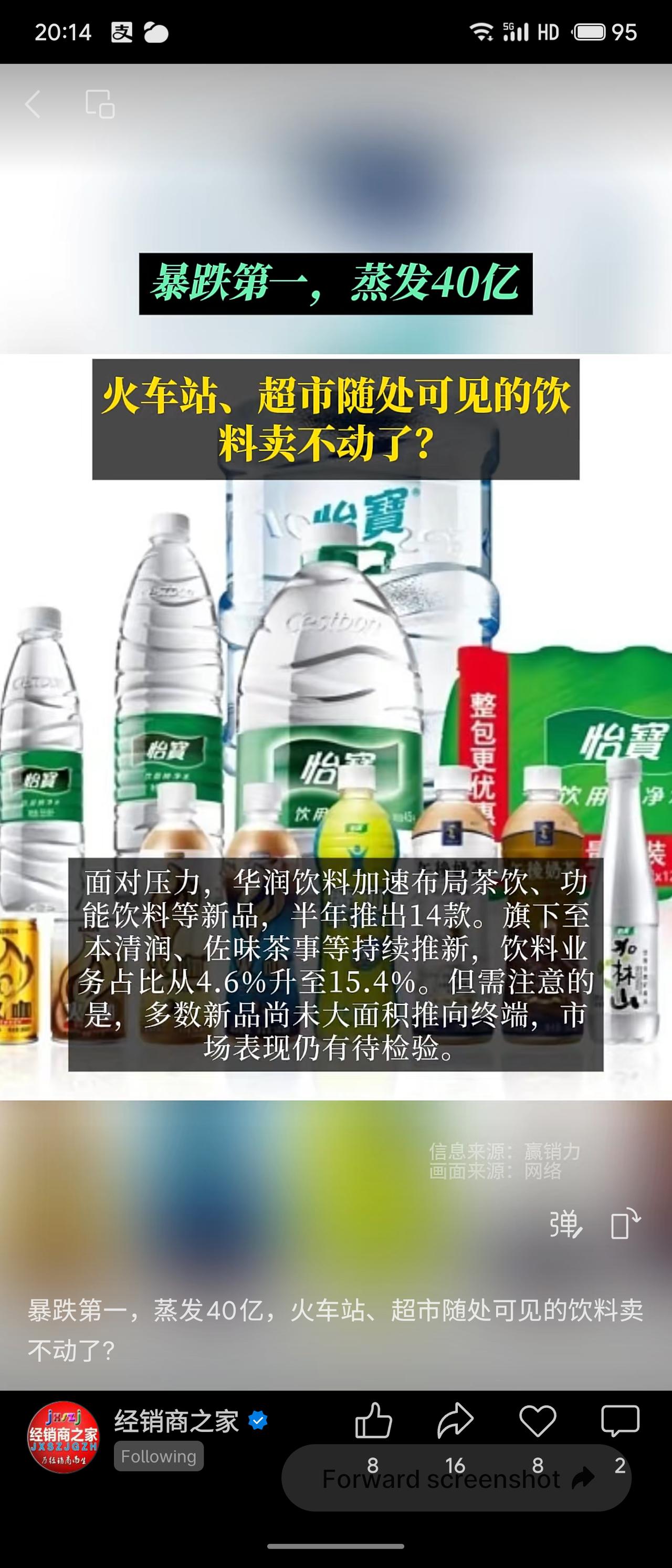 华润怡宝陷入增长困境,2025上半年营收利润双降,市值蒸发超40亿港元,市场份额从70%腰斩至40%。根本原因在于产品结构单一,包装水占比过高,且遭遇农夫山泉发起的价格战挤压。尽管公司加速布局茶饮等新品寻求“第二曲线”,但效果尚待检验。这警示快消巨头:单一依赖难抗风险,唯有创新与多元化方能应对变局。