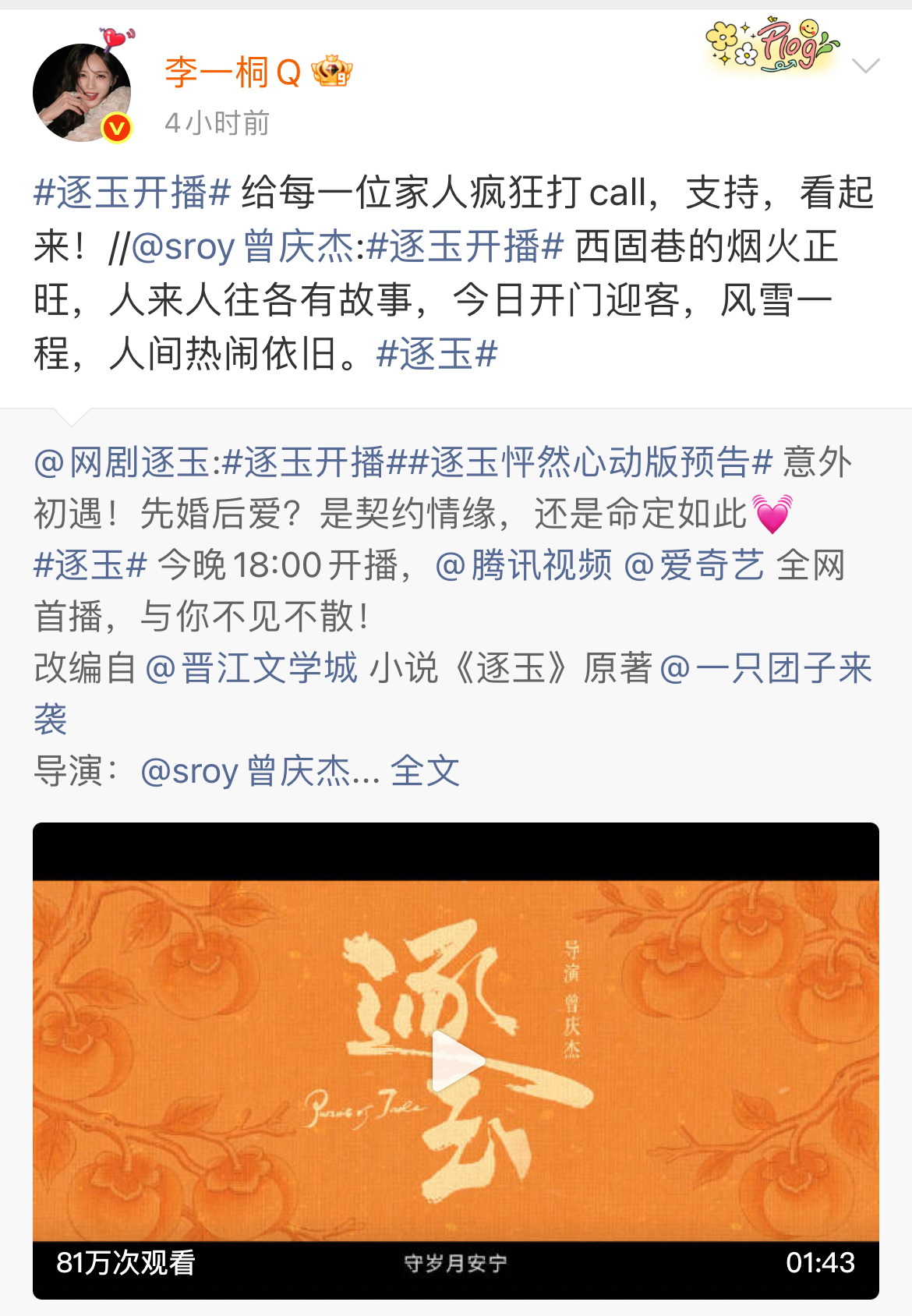 李一桐支持田曦薇逐玉李一桐支持田曦薇新剧《逐玉》,友谊99🎉