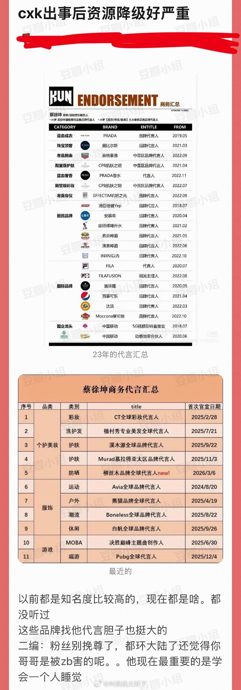 蔡徐坤资源降级是不是还挺严重的?
