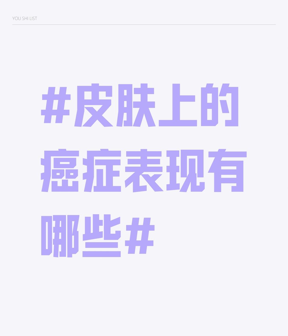 皮肤是健康“晴雨表”,它的一些变化可能是癌症信号。皮肤癌主要有鳞状细胞癌、基底细胞癌、恶性黑色素瘤等。其共同表现有皮肤新生物,像形状不规则、边缘不整齐的肿块;皮肤纹理变化、粗糙、溃疡、出血等;还会有持续瘙痒、疼痛或压痛,以及无原因的出血。 此外,皮肤红斑脱屑,若呈环状扩展、剧烈瘙痒,可能和乳腺癌或肝癌有关;脖子腋窝有“黑丝绒”症状,要警惕黑棘皮病,恶性的常与消化道肿瘤相关;有紫红色“熊猫眼”,伴肌肉症状,可能是皮肌炎,部分患者会合并多种癌症。出现这些情况,得及时就医检查。