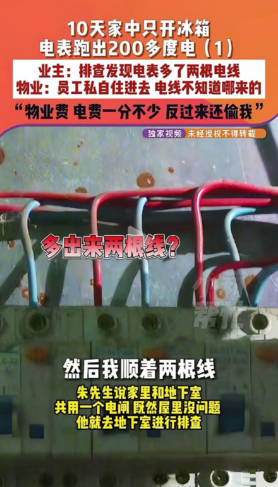 河南新乡,男子一家出门旅游10天,家里只有冰箱通电,竟然跑了200多度电。男子对家里的线路进行排查,发现电表上不知道怎么多了两根线,顺藤摸瓜找到了偷电贼。原来,物业的保安住到了没人的房子里,偷偷用男子家的电,里面像澡堂一样暖和。男子找物业讨要说法,物业的解释实在令人难以接受。 3月6日,朱先生发现自己家的电表用电量严重不对劲,越查越生气。 前段时间,朱先生一家人外出了整整10天,出门前家里除了冰箱正常通电之外,其他所有电器全都关了,门窗也锁得好好的。 可等他回家一看电费账单,直接傻眼了。只有一个冰箱运行,10天竟然跑了200多度电,这根本不符合常理。 朱先生当时就觉得这事太蹊跷了,觉得电表肯定出了问题,或者家里线路有异常。 越想越不对劲的朱先生,立刻开始仔细排查家里的线路和电表。 他跑到自家电表箱跟前一看,当场就发现了问题:别人家的电表都是正常的两根线,唯独自己家的电表上,莫名其妙多出来两根陌生的电线。 朱先生心里咯噔一下,隐隐觉得有人在偷自己家的电,他顺着这两根多出来的线一路往下查,最终查到了34号储藏间。 朱先生当场打开储藏间的门,里面的景象让他又气又惊:房间里暖烘烘的,热得像澡堂一样,明明没人在房间,暖气片却一直开着,这明显是有人在这里常住,而且用的还是自己家的电。 经过进一步核实,朱先生才知道,住在这个储藏间里的,不是别人,正是小区物业的保安。 自己花着钱买的房子、交着物业费,电竟然还被物业的人偷偷用了,朱先生气得火冒三丈,立刻找到物业讨要说法。 他对着物业经理质问道:我物业费一分不少交,电费也按时交,你们这是监守自盗,反过来偷我的电,丢人不丢人? 面对朱先生的质问,物业给出的解释却让人难以接受。 物业承认,确实是自家保安住在了这个空储藏间里,但又辩解称,公司从来没有给员工提供过食宿,是保安自己私自住进去的,与他们无关。 至于电表上那两根偷电的线,物业直接甩锅,说不知道是谁接的,自家电工也不知情。 不仅如此,物业还帮着保安狡辩,声称住在这里的保安不会接电、不懂电,也没有接电资质,纯属是开门发现里面有电,就简单收拾了一下住下了。 这样的说法,朱先生和妻子根本不认可。 他们追问物业,小区电表一般多久巡查一次,难道从来不巡查的吗? 物业经理坦言,规定是一个月巡查一次,他们巡查确实没发现。 可让人不解的是,这名保安已经在储藏间住了三个月,这三个月里,物业多次巡查,竟然都没发现朱先生家电表多了两根线。 对此,物业经理还找借口说,电线在电表箱里面,可能没看到。 朱先生差点气笑了,物业安排专人巡查电表,难道不打开电表箱仔细检查吗? 在事实面前,物业经理被问的哑口无言,最终没办法再推脱。 物业经理表示,会把保安这三个月偷用的电费全部补给朱先生,涉事保安也会按照规定辞退处理,后续还会对小区所有储藏间进行全面排查,杜绝类似的事情再发生。 可即便如此,朱先生心里还是很不舒服,安安心心外出旅游,回家却遭遇这样的事,物业的管理失职和敷衍态度,实在让他们难以安心。 《电力法》第七十一条规定:盗窃电能的,由电力管理部门责令停止违法行为,追缴电费并处应交电费五倍以下的罚款;构成犯罪的,依照刑法有关规定追究刑事责任。” 本案中,物业保安私自在朱先生家电表箱接电线,使用其电能长达三个月,外出10天即产生200多度异常用电,属于典型的盗窃电能行为。 保安以无偿占用为目的,通过私接线路绕越朱先生家用电计量装置用电,主观过错明显,客观上造成朱先生电费损失,侵害了其财产权益与合法用电权益。 朱先生要是给电力部门投诉,电力部门可以责令保安停止窃电,追缴其三个月实际使用的电费,并对其处以应交电费五倍以下的罚款。 如果窃电金额达到当地盗窃罪“数额较大”标准,还将依法追究其刑事责任。 民事角度而言,物业因管理失职,还需要对朱先生的损失承担连带赔偿责任。