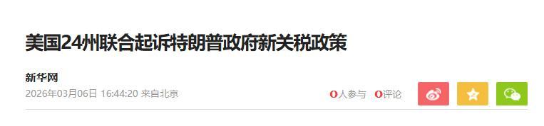 美国24州集体硬刚特朗普,15%关税要黄?普通家庭每年多花1200刀的真相藏不住了 美国又乱成一锅粥!3月5号,24个州直接联手,把特朗普政府告上国际贸易法院,就一诉求:立刻叫停特朗普刚宣布的、对全球大多数商品加征15%关税的破政策! 各州胆儿也太大了?居然敢集体叫板总统?其实这事儿,早有伏笔,特朗普这波操作,纯属“屡教不改”,还玩起“钻空子”的把戏。 两周前,美国最高法院刚判了,特朗普之前依据《国际紧急经济权力法》加征关税,是违法的!说白了,就是总统没这个权力,越界了。 特朗普倒好,败诉刚过去没几天,转头就找个新借口——援引《1974年贸易法》第122条款,宣布对全球大多数商品加征15%关税,一开始说先征10%,没过一天就改口涨到15%,比翻书还快。 这24个州也不是吃素的,牵头的就是俄勒冈、加州、纽约州这些经济大州,直接戳穿他把戏:你援引的这个条款,根本不是这么用的!人家明确说,只适用于“严重国际收支赤字”的情况,而贸易逆差和国际收支赤字,根本不是一回事儿,纯属偷换概念、绕过最高法院的裁决。 更关键的,经济学家早就说大实话:美国现在根本就没所谓“严重国际收支赤字”,这玩意儿一般只有国家还不上外债的时候才会出现,美国目前压根没这问题,特朗普就是在找借口滥用权力。 各州总检察长直接怒了,集体发声:“不能让总统为所欲为!” 这诉讼,也被美国舆论称为“宪法权力保卫战”——说白,就是各州要守住自己权力,不能让总统行政权无限扩张,把法律当摆设。 不就是加个关税吗?至于闹这么大?当然至于!因为这关税,最后买单的根本不是别的国家,而是美国自己的老百姓和企业。 亚利桑那州总检察长直接放数据:按这15%的关税,美国普通家庭每年的生活成本,要多花1200美元以上!纽约联邦储备银行的研究也证实了这一点,而且2025年美国“关税成本”的90%,本来就由美国消费者和企业承担,特朗普这是在继续推行失败的经济政策。 给大家算笔明白账:1200美元,折合人民币差不多8600块,分摊到每个月,就是700多块,相当于普通美国人多交笔房租,或者多花了个月的伙食费。这还只是保守估计,美智库税收基金会说,要是关税一直不变,今年每个家庭的额外支出可能会涨到1300美元。 更扎心的,最新民调,55%的美国民众都觉得,关税政策让自己家的财务状况变糟,七成美国人说食品杂货支出涨了,六成说水电费变贵了,这日子能不闹心吗?。 问题来了,特朗普明知道加关税会坑老百姓,会被起诉,为啥还死磕关税不放?背后藏着三重政治算计,一个比一个现实。 第一,骗选票、讨好支持者。特朗普一直给支持者画饼,说加关税能减少贸易逆差、让制造业回流,还能保护美国工人的工作。要知道,2025年11月美国贸易逆差环比猛增了95%,达到568亿美元,特朗普急着用关税“表决心”,就是为了稳住自己的基本盘,为后续选举铺路。 第二,想靠关税敛财,填财政赤字的窟窿。特朗普本来盘算着,靠“对等关税”一年能赚6000亿到7000亿美元,缓解美国的债务危机——要知道,美国未来几年财政赤字占GDP的比重会维持在7%-8%,是财长目标的两倍多,到2031年债务会达到GDP的140%,他急着找钱补窟窿呢。 第三,把关税当“万能筹码”。在特朗普眼里,关税不是经济政策,而是施压的工具,不管是移民问题,还是和其他国家谈判,他都想靠关税逼对方让步,说白了就是“暴徒式的敲诈勒索”,觉得只要挥舞关税大棒,就能让别人听他的。 最后再说说大家关心的两个问题:24州为啥敢硬刚总统?美国联邦制要崩溃了吗? 其实各州敢叫板,一是占着理,特朗普确实越权了;二是这些州大多是经济大州,加关税对他们的伤害最大——比如加州、纽约州,进出口贸易发达,关税一涨,企业成本飙升,税收也会受影响,他们根本耗不起。 至于联邦制崩溃,倒还不至于,这更像是美国行政权和地方权力、法治之间的一次激烈博弈。不过这场诉讼,很可能重塑美国未来的关税政策,要是特朗普输了,以后总统再想随便加关税,就没那么容易了。 特朗普的关税游戏,终究是场“损人不利己”的闹剧。他只顾着自己政治算计,却把普通家庭拖进成本上涨的泥潭,连自己国家的24个州都看不下去,可想而知,这事儿最后大概率还是要黄。 网友的调侃说得好:“特朗普的关税游戏又吃官司了”,这背后,其实是美国行政权扩张和法治的深层矛盾,而最后买单的,永远是最普通的老百姓。