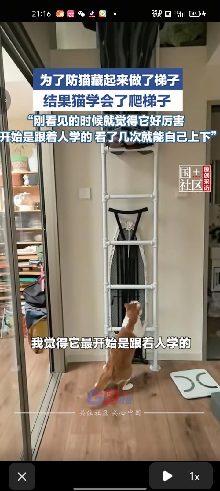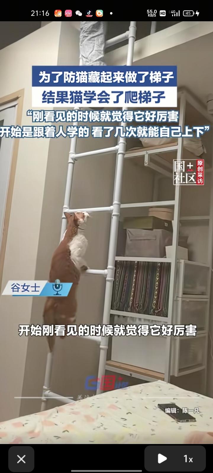 3月4日,天津。女子为了防猫藏起来做了梯子,结果猫学会爬梯子了。当事人谷女士表示,刚看见的时候就觉得它好厉害,开始是跟人学的,看了几次就能自己上下。 要说猫是怎么下去的,就是猫爬下梯子,再跳到床上