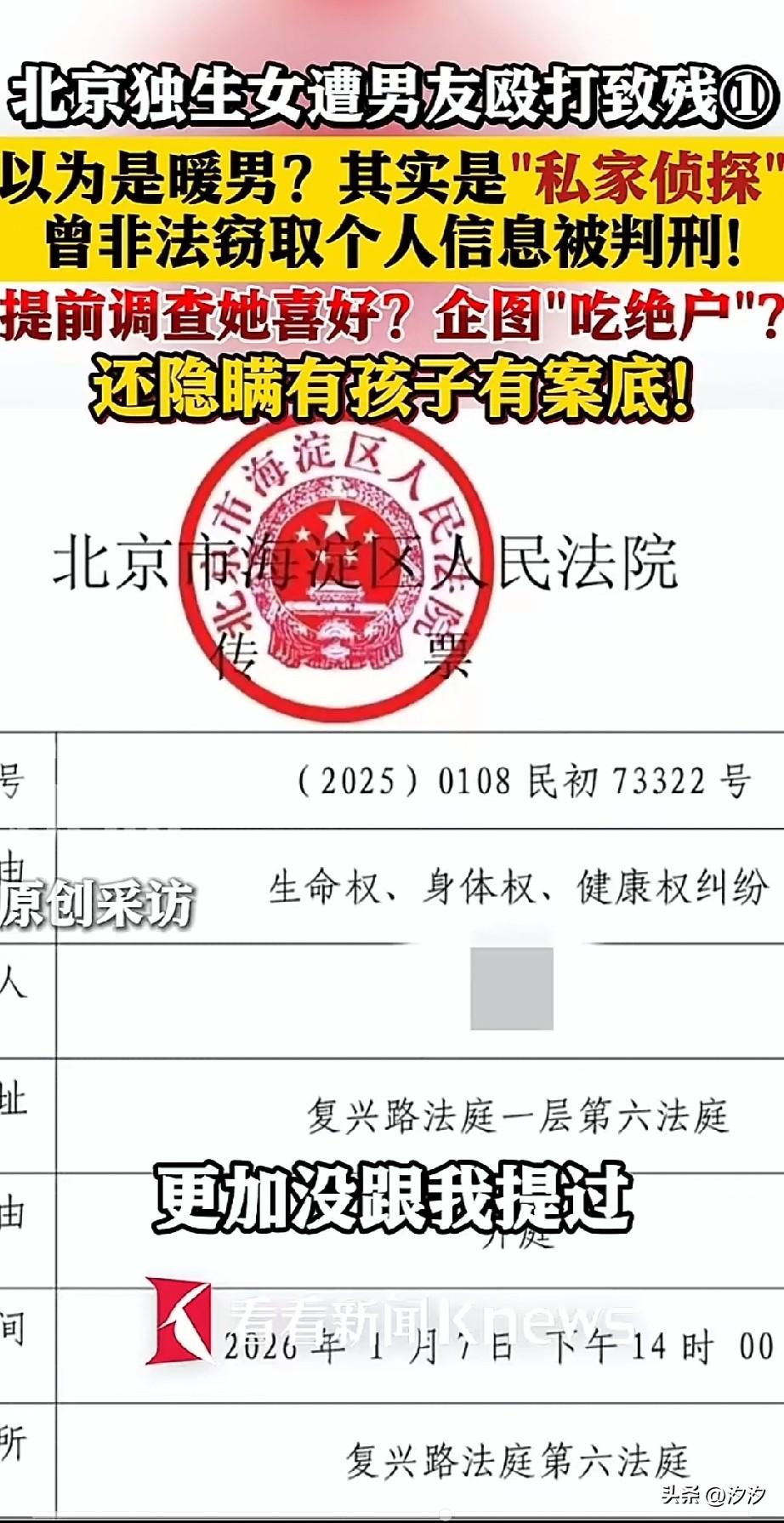 北京独生女,交了个男朋友, 以为是个暖男, 结果对方却是私家侦探, 曾经还因为窃取他人信息坐过牢, 追他的时候连她的爱好都知道, 天天请她吃大餐,喝奶茶, 把她的喜好摸得一清二楚, 就这样她很快沦陷了, 有一次她男友和朋友吃饭的时候, 喝酒喝醉了,她男友的朋友说漏了嘴, 她才知道自己的男友不仅有案底, 还有孩子,男友追她完全是为了她家的财产,只想吃绝户! 两人争吵的时候还把她打成了残疾, 谁也想不到电视剧照进了现实, 原来现实中真有这样的事儿, 所以独生女醒醒吧, 如果一个男生没有一点脾气, 对你特别的好, 你就要注意了, 尤其是那些特别暖的男生, 从来不和你生气, 还处处维护你,宠溺你, 你就要想想你值不值这个待遇, 爱从来不是单方面的付出, 万一也遇到这样的就惨了, 这个北京女孩就是前车之鉴, 大家对于这样的事儿怎么看? 北京 大龄未婚女孩儿 独生儿子女 北京女孩择偶观 独生子女的婚恋