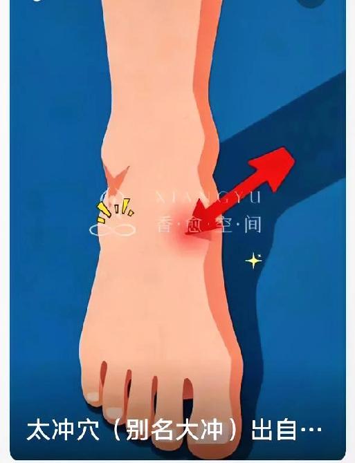 大冲穴又名太冲,是肝经原穴,被称为人体“出气筒”,日常按揉好处多。 它能疏肝理气、平肝降火,快速缓解烦躁易怒、胸闷叹气、压力大等情绪问题,帮人平复心情。 还可改善头痛眩晕、耳鸣目赤、失眠多梦,对高血压人群有辅助调理作用。 女性按揉能舒缓痛经、月经不调;久坐熬夜、爱生气、眼睛干涩的人常按,能疏通气血、减轻不适。 位置在足背第一、二跖骨间凹陷处,每天点按3-5分钟,酸胀为宜,简单实用、老少皆宜。