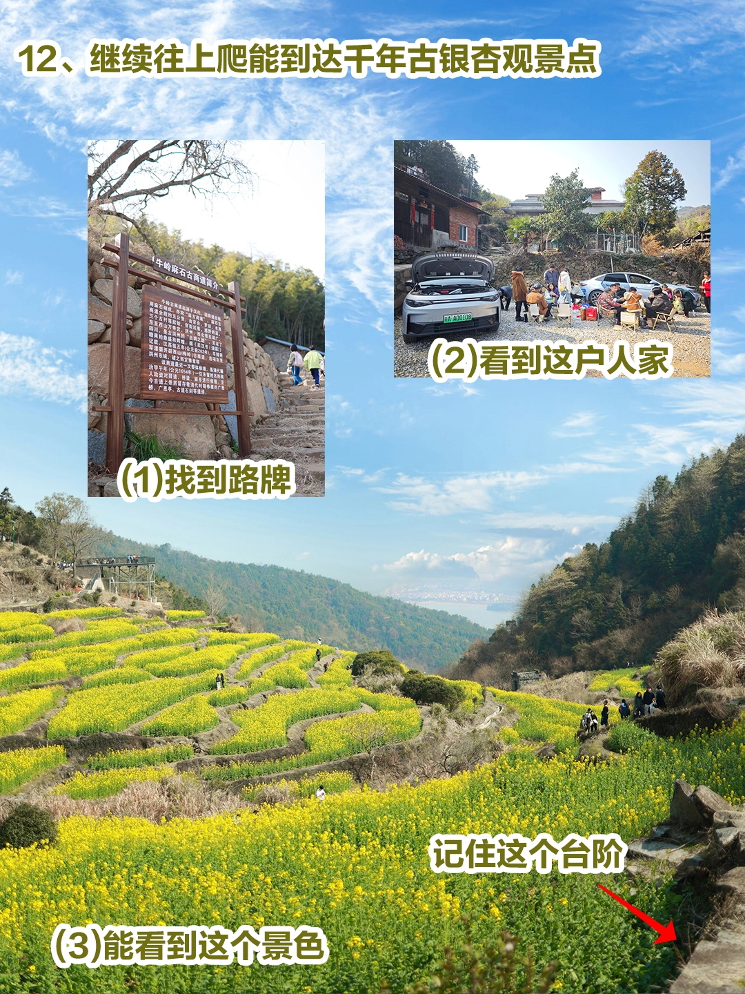 🚗路线:牛岭下亭子徒步路线:下亭子→千年麻石古道🪨(石头路,不知道可以问村民)→牛岭村委会(车也可以可直达)→观景台(俯瞰萧峰水库)→千年银杏→原路返回下亭子(吃农家乐)
