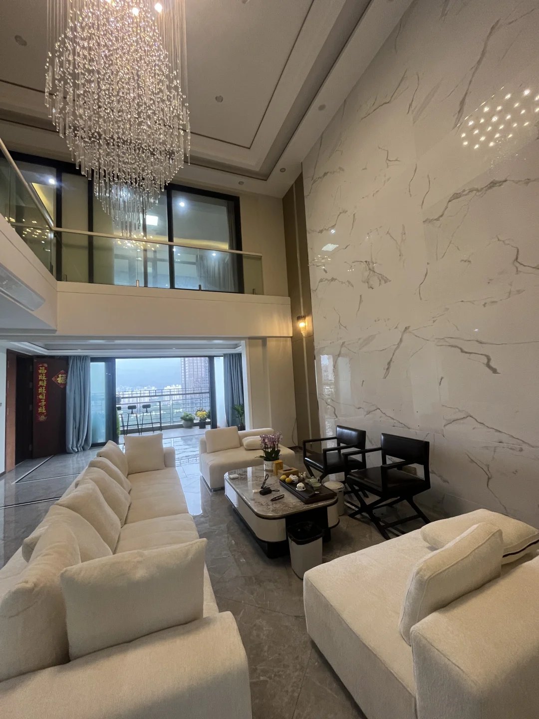 客厅还有一个6米高挑空,水晶灯承托着奢华,把客厅走完预计要1分钟的时间。