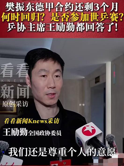 王励勤最新回应樊振东是否打世乒赛问题:还在沟通中,我们还是尊重个人意愿! 王励勤主席最新回应: “目前还在跟他本人沟通当中, 我们还是尊重个人意愿, 也会全力以赴的做好他的 相关保障工作。 至于樊振东是否回来参加世乒赛, 目前还没有说是确定参加, 相关运动员符合直接参赛的名额, 剩下的还要队内选拔, 包括教练综合评估来产生, 还有要经过备战参赛情况, 来最后确定, 我们也会适时的进行对外公布!” 任何解答都有钻孔的可能, 所以他不要较真, 一些话听一半, 因为个人扛不过去组织!