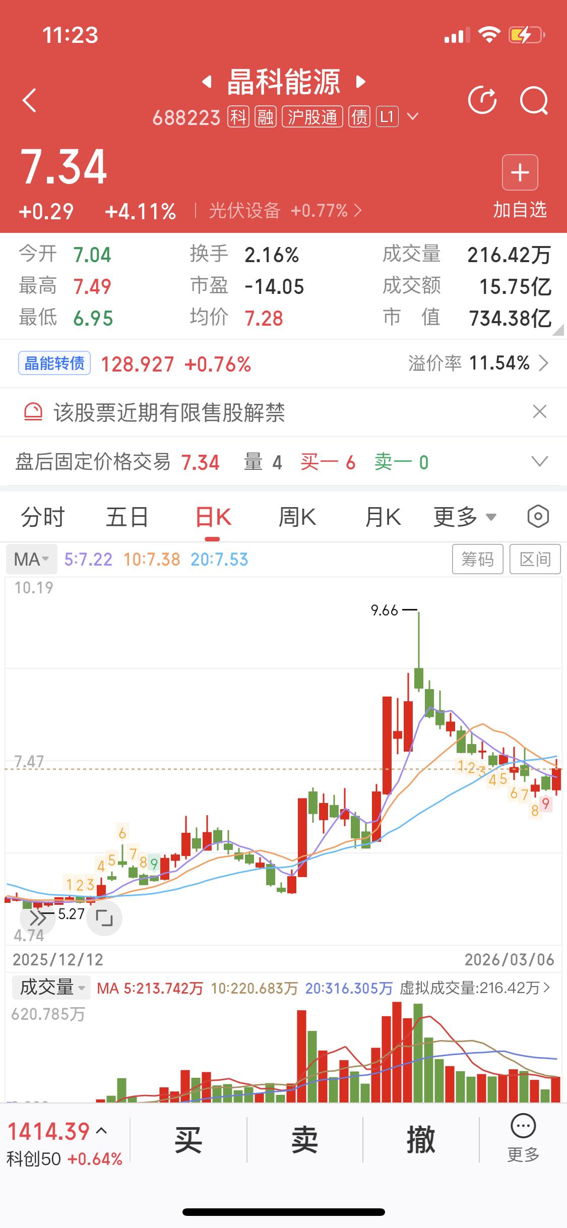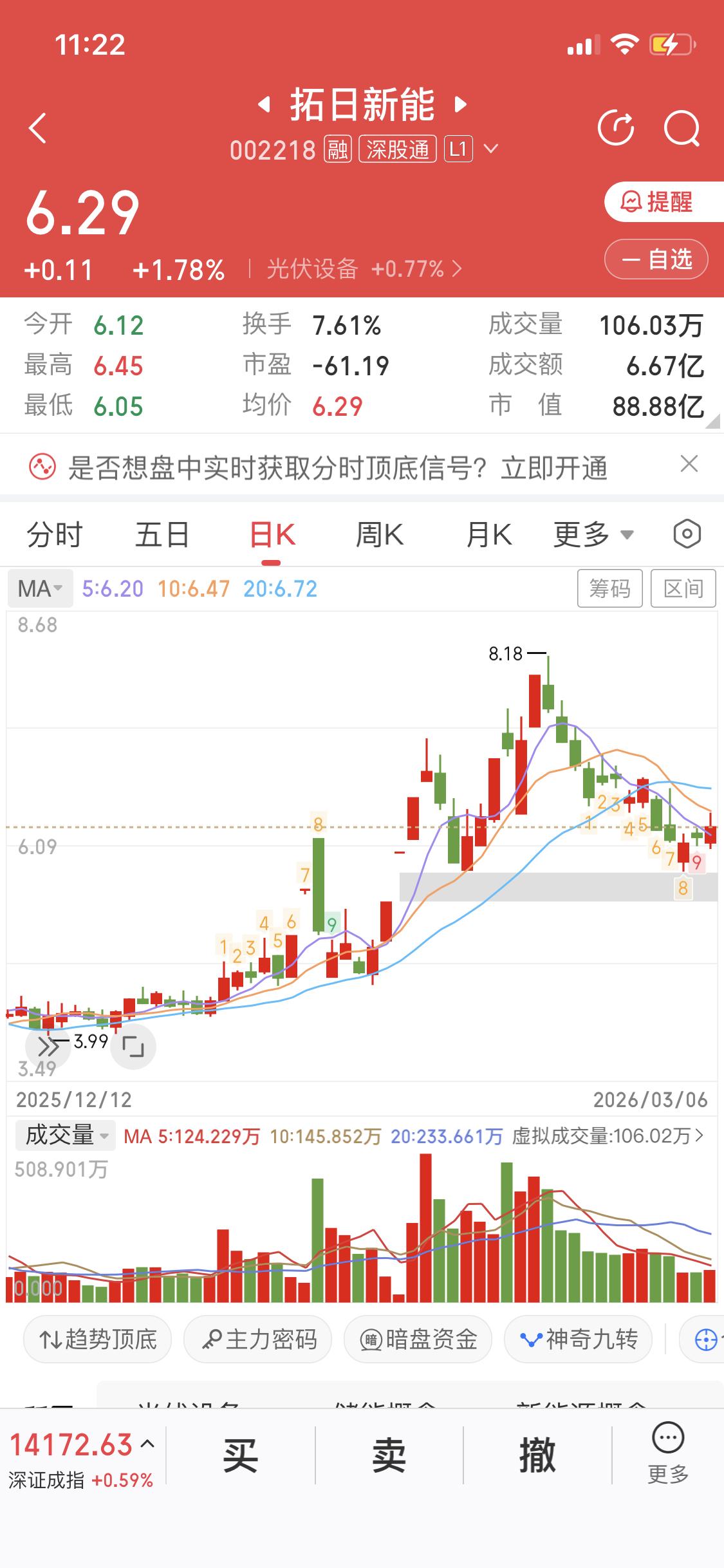 下周太空光伏可能要上涨 不是从消息面来得出结论的 我是从股价形态判断太空光伏下周要上涨 一般来说,先有利好消息,股价才会上涨,股价呈现上涨态势 能不能反过来呢,股价呈现上涨态势,下周太空光伏要出利好呢(信息的不对称,机构永远比散户消息灵通,靠比消息永远玩不过主力,但是主力根据消息布局,还是能够看出蛛丝马迹的) 我选取了太空光伏代表标的晶科能源和拓日新能举例,两只股票跌到支撑位止跌,今日都从新站上五日线,股价翻红,有资金进入,下周可值得关注,还有前期龙头协鑫集成今日涨停,有聪明资金抢筹,种种迹象都预示下周太空光伏反弹,至于是不是反转,就看下周能不能打掉前期高位,放量突破[泣不成声]
