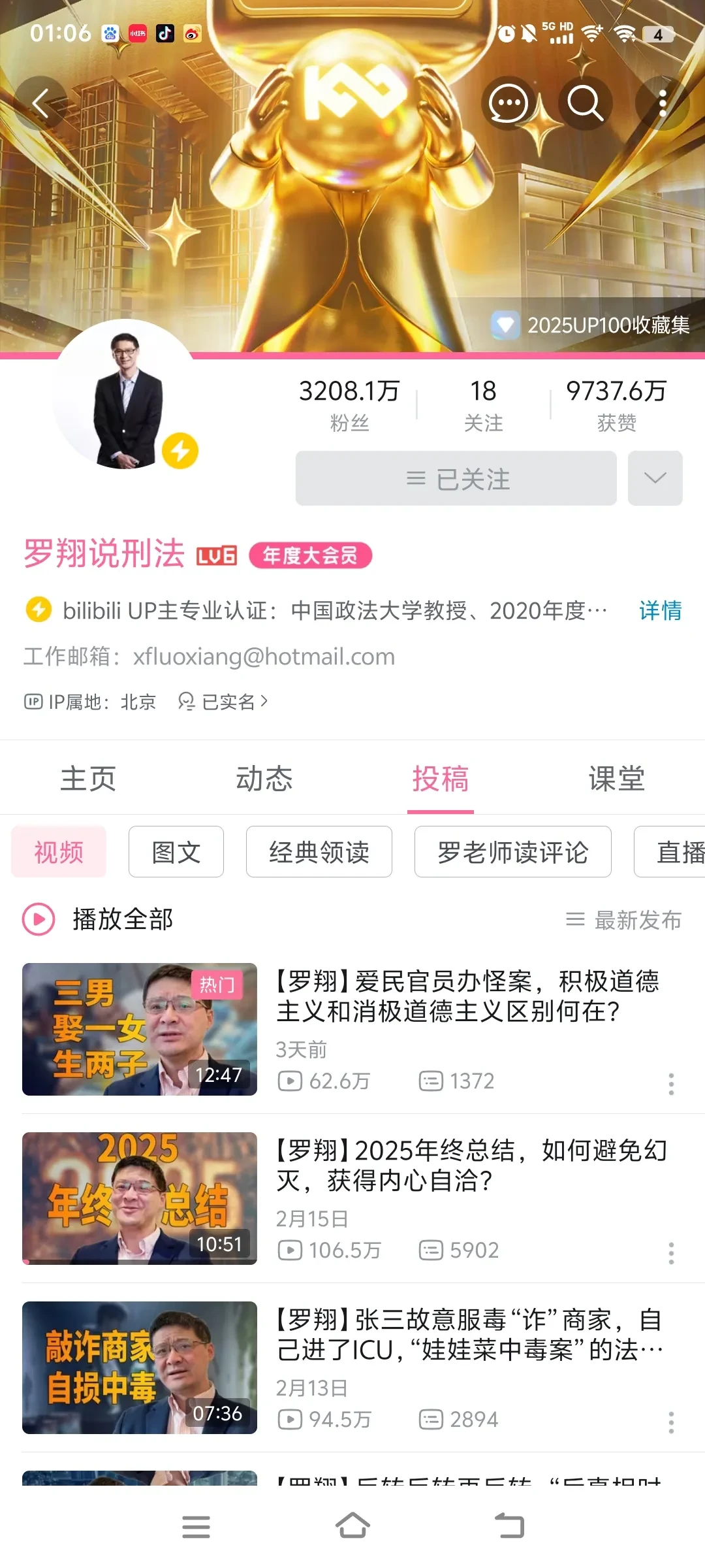 首先说罗翔老师是否退网?并没有,罗翔并没有退网,他在、微博的账号还在,而且在B站还在坚持分享法律知识。
