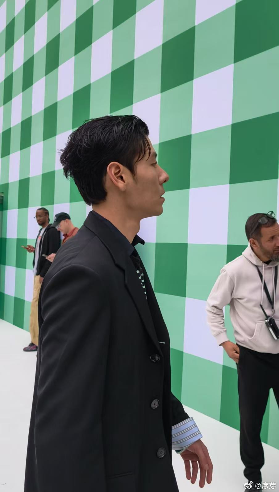 罗意威生图蒋奇明今日秀场现身,黑色look帅炸全场,皮贴骨线条感明显,无滤镜生