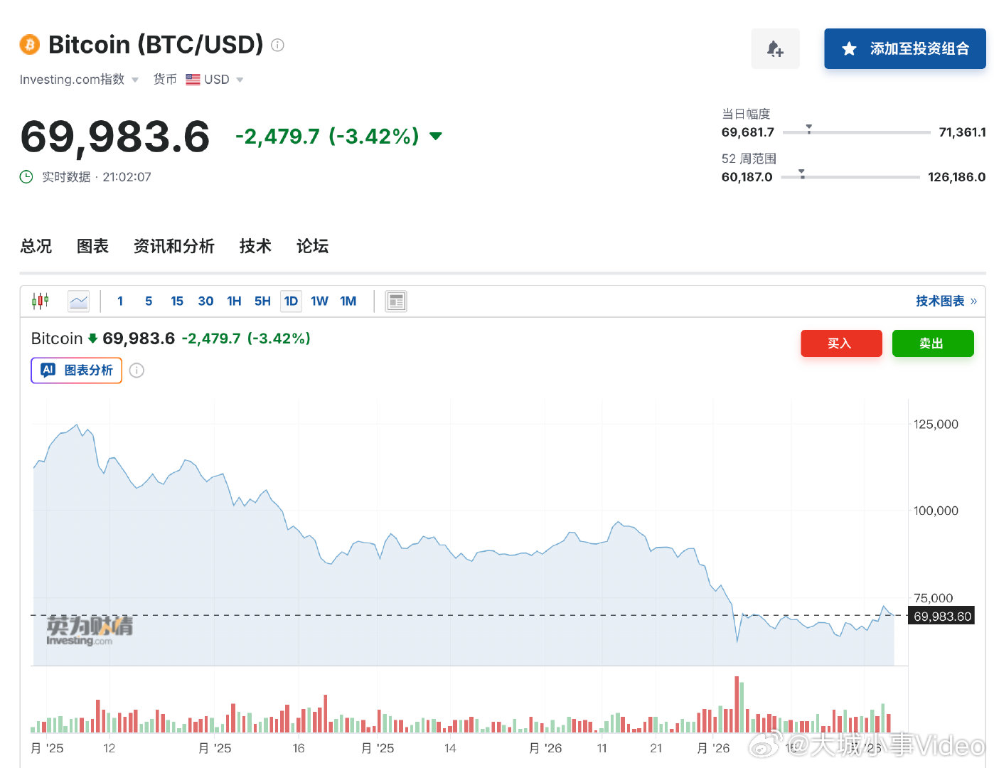 【比特币失守7万美元比特币跌4%】3月6日,行情显示,比特币跌至70000美元下方,过去24小时内跌4.04%;行情显示,以太坊跌至2050.94美元,过去24小时内跌4.13% (财联社)