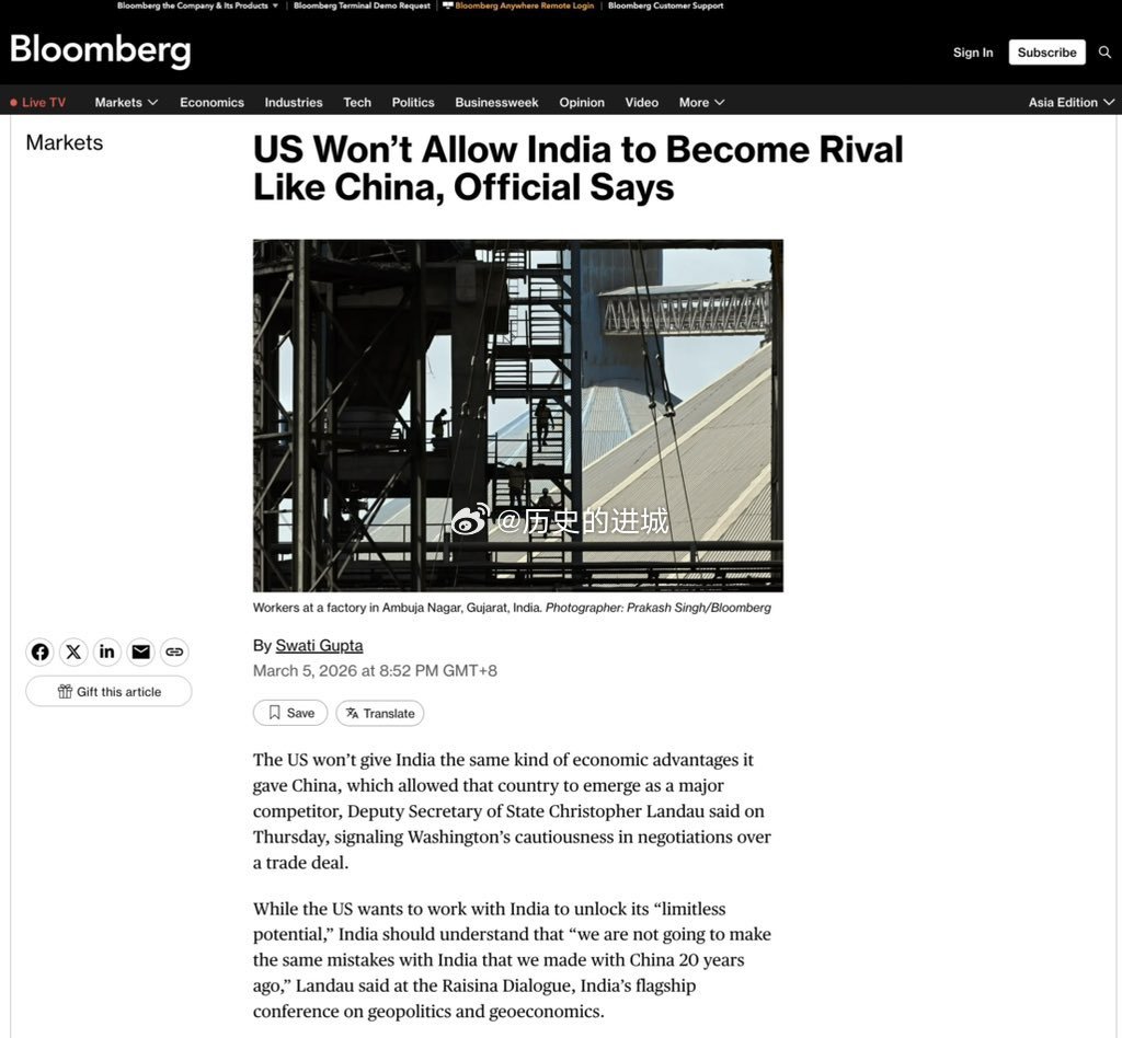 彭博社报道,美国副国务卿克里斯托弗·兰道表示,美国不会允许印度有与中国相同的经济优势并崛起成为美国的主要竞争对手。海外新鲜事